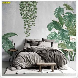 • วอลเปเปอร์ลายดอกไม้ศิลปะ สไตล์บูทิคสำหรับห้องพักโรงแรม รีสอร์ท ออกแบบและผลิตเฉพาะ