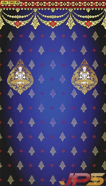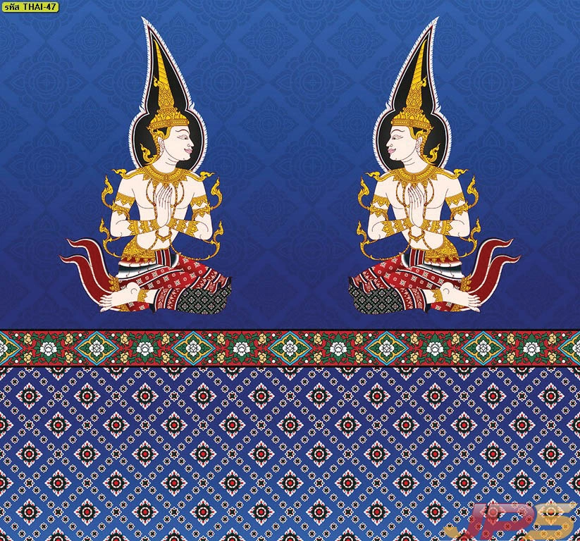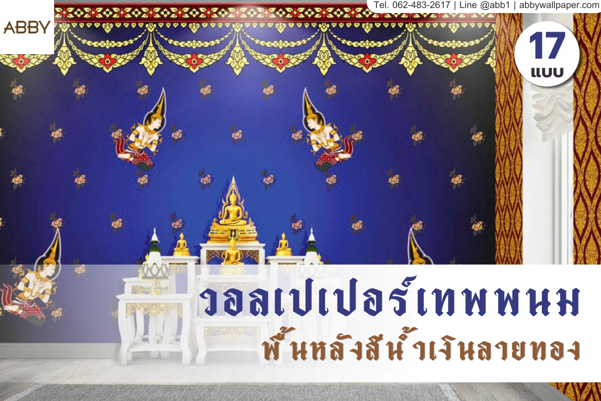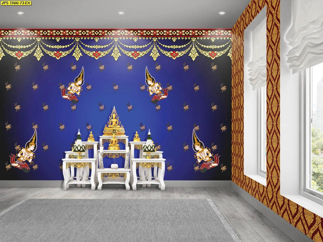 วอลเปเปอร์พื้นน้ำเงินลายเทพพนมพนมมือบนพื้นหลังสีน้ำเงินเข้มสำหรับตกแต่งห้องพระเสริมสิริมงคล
