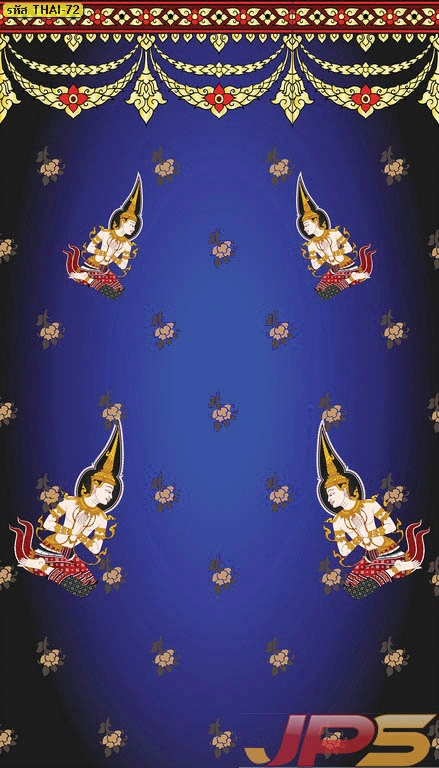วอลเปเปอร์ลายเทพพนมพื้นน้ำเงิน แสดงรายละเอียดงานพิมพ์ลายไทยสีทองประณีตที่ช่วยเพิ่มความหรูหราให้กับพื้นที่ศักดิ์สิทธิ์
