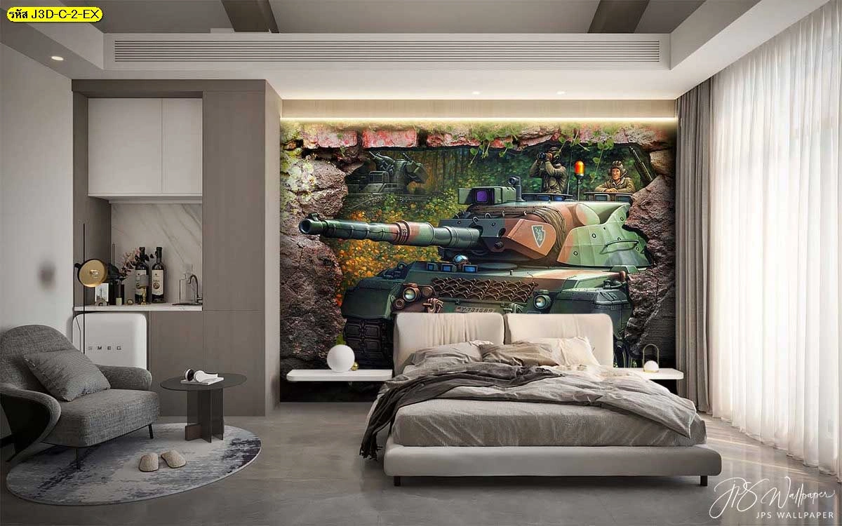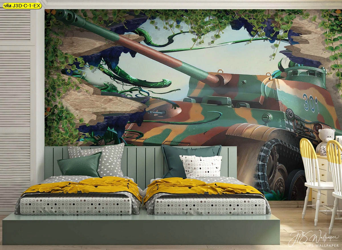 ห้องเด็กธีมรถถังทหารสไตล์สามมิติ
