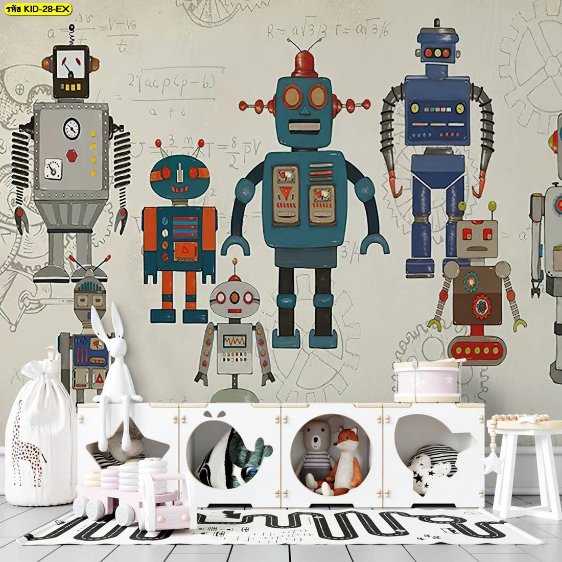 ห้องเด็กธีมหุ่นยนต์วินเทจสไตล์วาดมือ