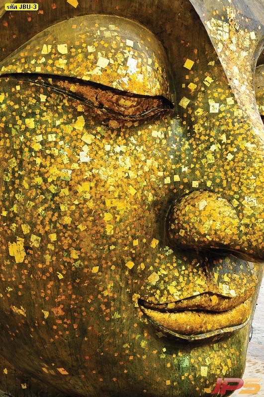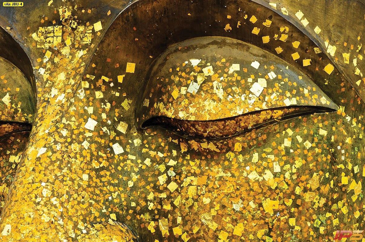 ภาพศิลปะไทยพระพุทธรูปปิดทองเปลวละเอียด เน้นความงดงามของพื้นผิว เหมาะสำหรับตกแต่งผนังห้องพระให้โดดเด่น