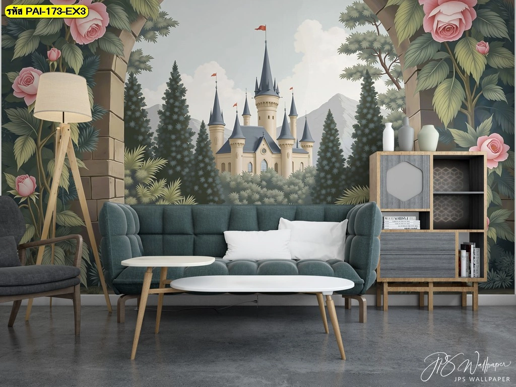 วอลเปเปอร์ภาพวิวปราสาทบนเนินสวน เปลี่ยนมุมห้องรับแขกให้มีเรื่องราวและจินตนาการ สดใสลงตัวกับสไตล์ยุโรปคลาสสิก เหมาะสำหรับกลุ่มคนทำงานและครอบครัว