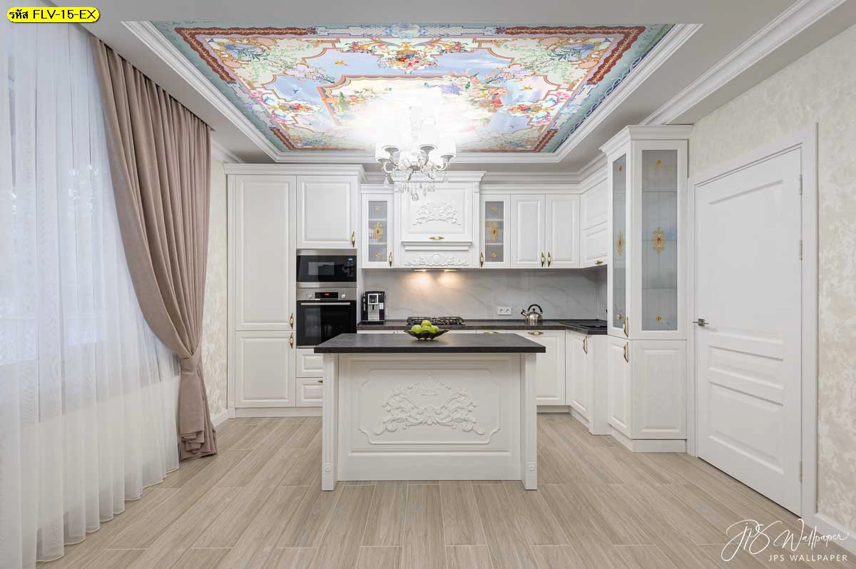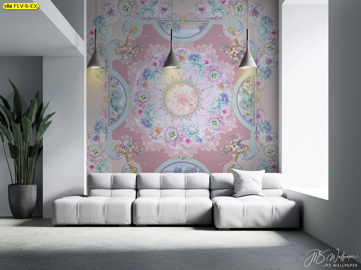 การตกแต่งที่สมบูรณ์แบบไม่ได้หยุดอยู่แค่ผนัง แต่รวมถึงฝ้าเพดานและกระจกด้วย สำหรับผู้ที่หลงใหลในความอลังการ เราขอแนะนำภาพสำหรับติดตั้งบนฝ้าเพดาน ให้ความรู้สึกเหมือนอยู่ในวิหารยุโรปที่มีภาพเขียนเฟรสโก้ และภาพลวดลายมันดาลาสีชมพูหวานที่ใช้เป็นฉากหลังโซฟาได้อย่างโดดเด่น นอกจากนี้ เพื่อให้การตกแต่งเป็นไปในทิศทางเดียวกัน เรายังมีบริการ พิมพ์สติ๊กเกอร์ 3M ติดกระจก โดยนำลวดลายจากวอลเปเปอร์ไปพิมพ์ลงบนสติ๊กเกอร์คุณภาพสูง เพื่อตกแต่งพาร์ทิชั่นกั้นห้องหรือบานประตูเลื่อน ทำให้วอลเปเปอร์แต่งห้องสไตล์วินเทจหรูหราของคุณดูครบเครื่องและเป็นเอกลักษณ์เฉพาะตัว