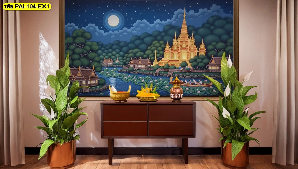 นอกจากการตกแต่งผนังส่วนใหญ่แล้ว การเลือกภาพที่เป็นจุดประธานก็มีความสำคัญอย่างยิ่ง ภาพมงคลติดผนังเสริมฮวงจุ้ยช่วยดึงดูดพลังงานที่ดีเข้ามาสู่ที่อยู่อาศัย โดยเฉพาะการเลือกใช้ งานศิลปะไทยพิมพ์ความละเอียดสูงประดับหลังพระ ซึ่งเปรียบเสมือนการสร้างวิมานจำลองที่ช่วยส่งเสริมความสง่างามให้กับองค์พระประธานของคุณ