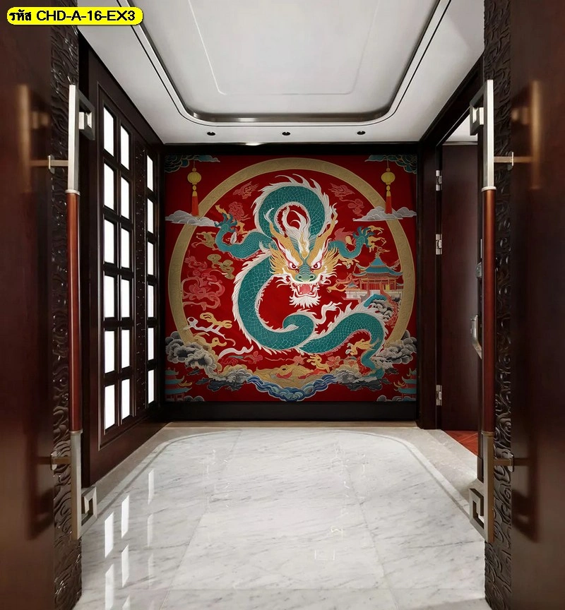 สำหรับห้องประชุมหรือห้องรับประทานอาหารระดับผู้บริหาร การเลือกใช้ลวดลายมังกรบนพื้นหลังสีเข้มจะช่วยขับเน้นความหรูหราและดูลึกลับน่าค้นหา ยิ่งช่วยส่งเสริมภาพลักษณ์องค์กรให้ดูมั่นคง