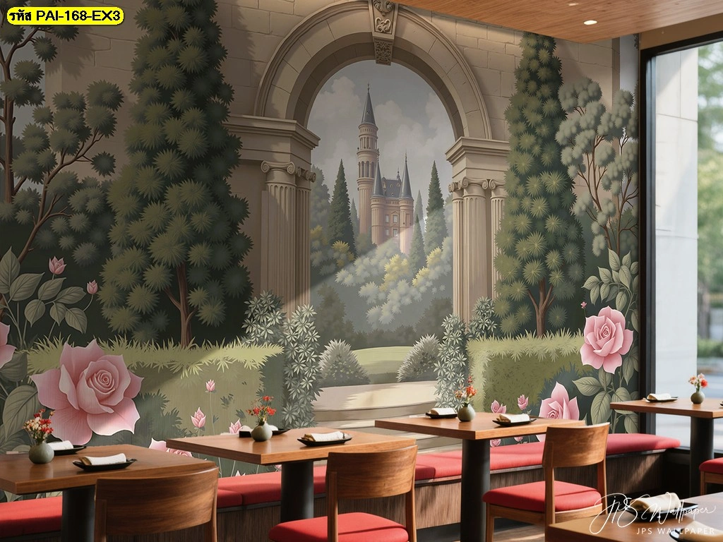 เปลี่ยนร้านอาหารเป็นสวนยุโรปด้วยวอลเปเปอร์ซุ้มประตูสุดหรู งานพิมพ์คุณภาพสูง แต่งผนังร้านสวยเหนือระดับด้วย ABBY Wallpaper