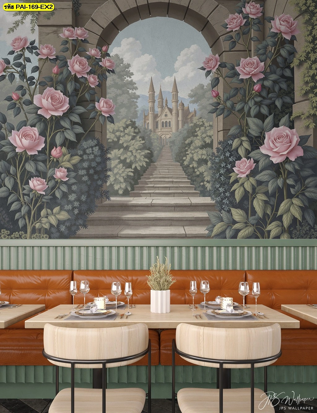 Q1: วอลเปเปอร์ภาพซุ้มประตูสวนยุโรป เหมาะกับร้านอาหารสไตล์ใด