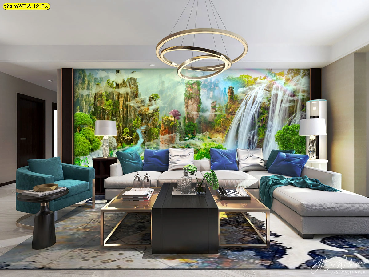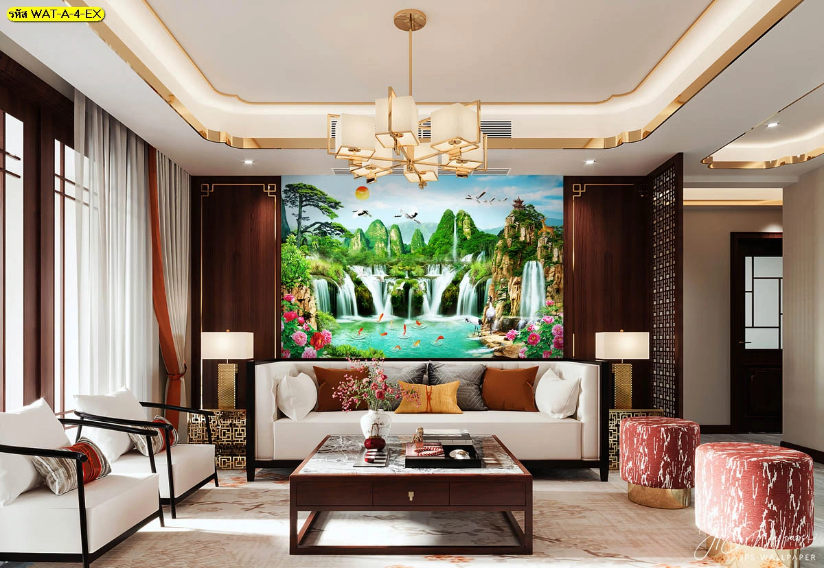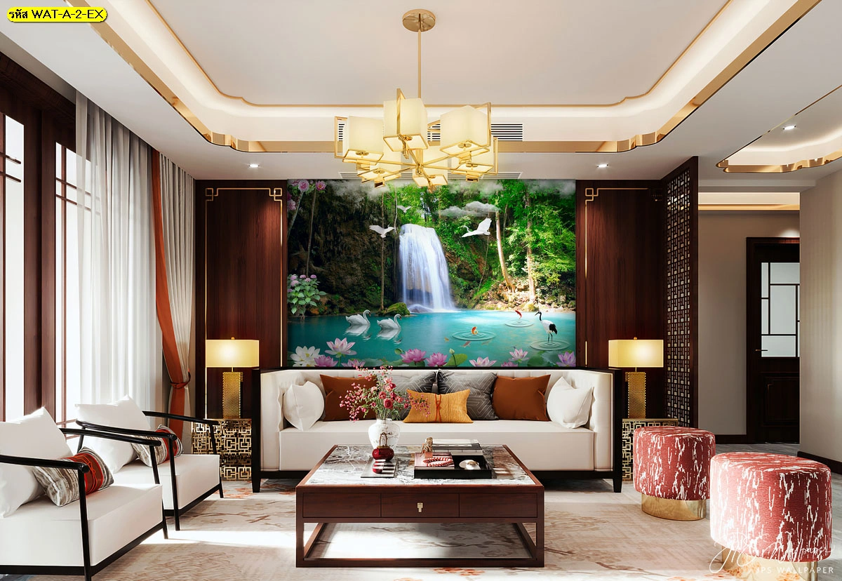 ดีไซน์เหนือระดับกับ วอลเปเปอร์น้ำตกเสริมดวงห้องรับแขก สร้างบรรยากาศหรูหรามีสไตล์