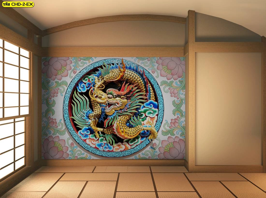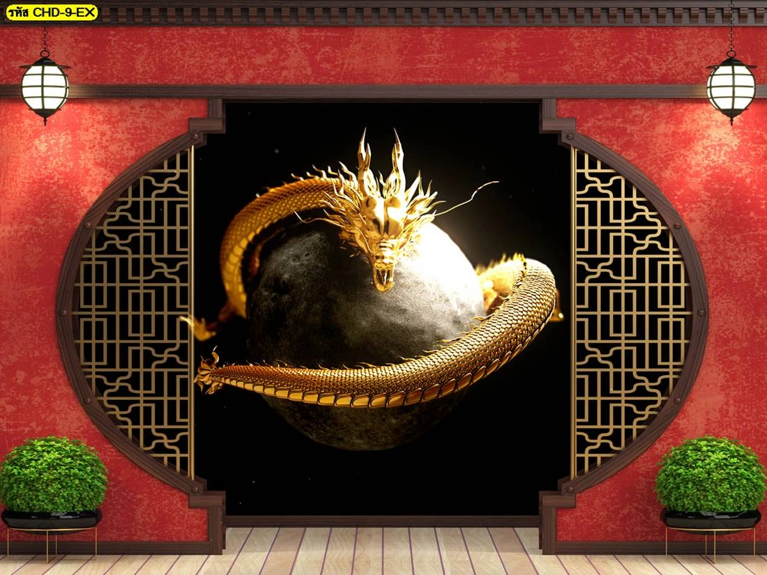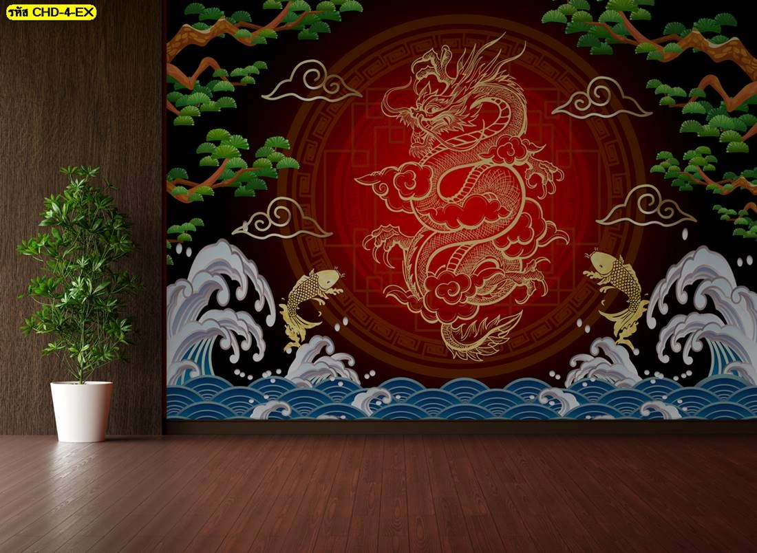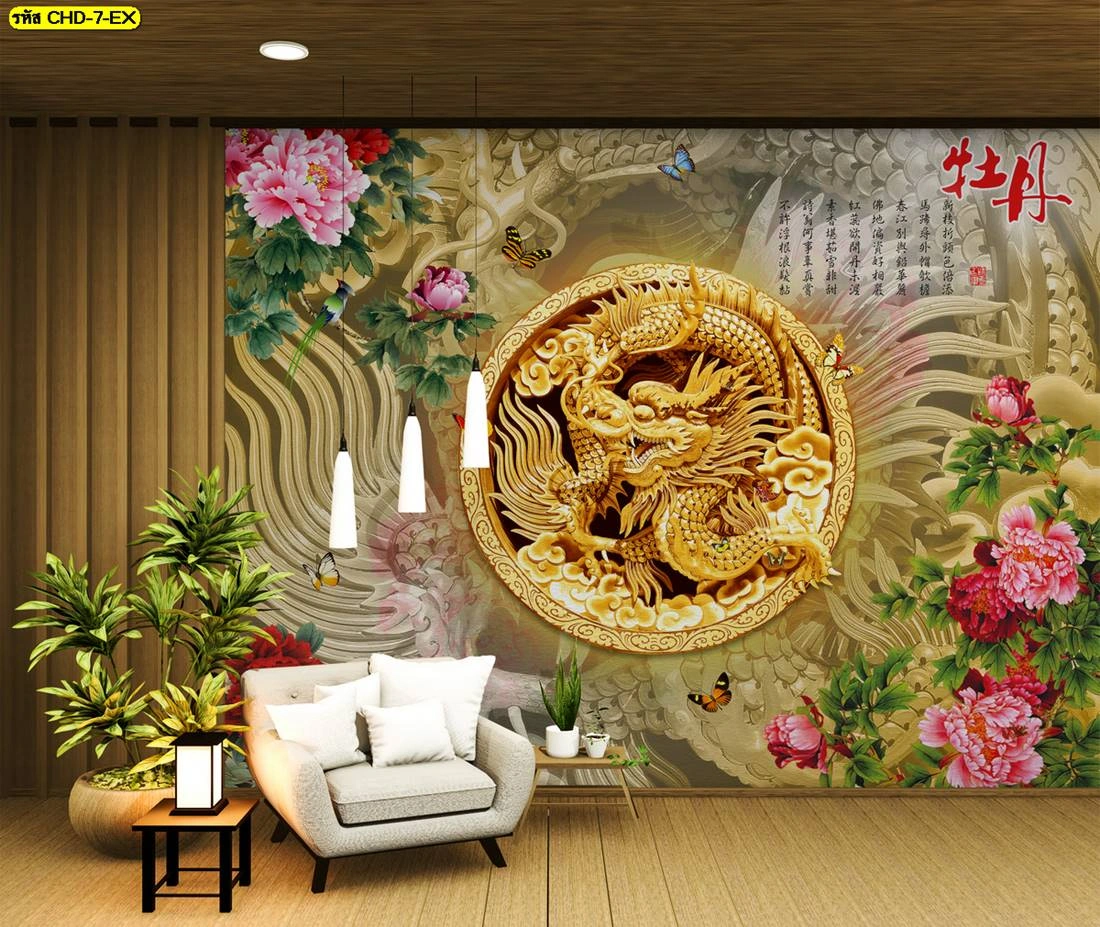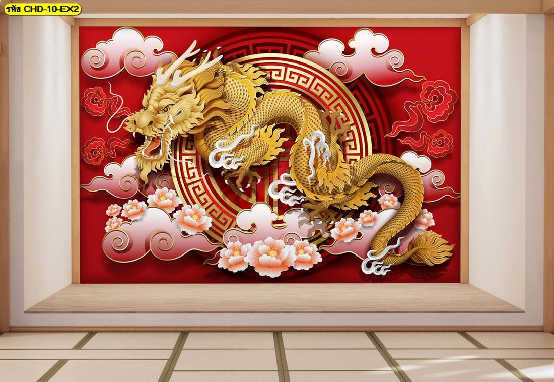 วอลเปเปอร์ลายมังกรทอง รับพิมพ์วอลเปเปอร์ติดผนังลายจีนทอง สวยสง่าคู่บ้านคุณ