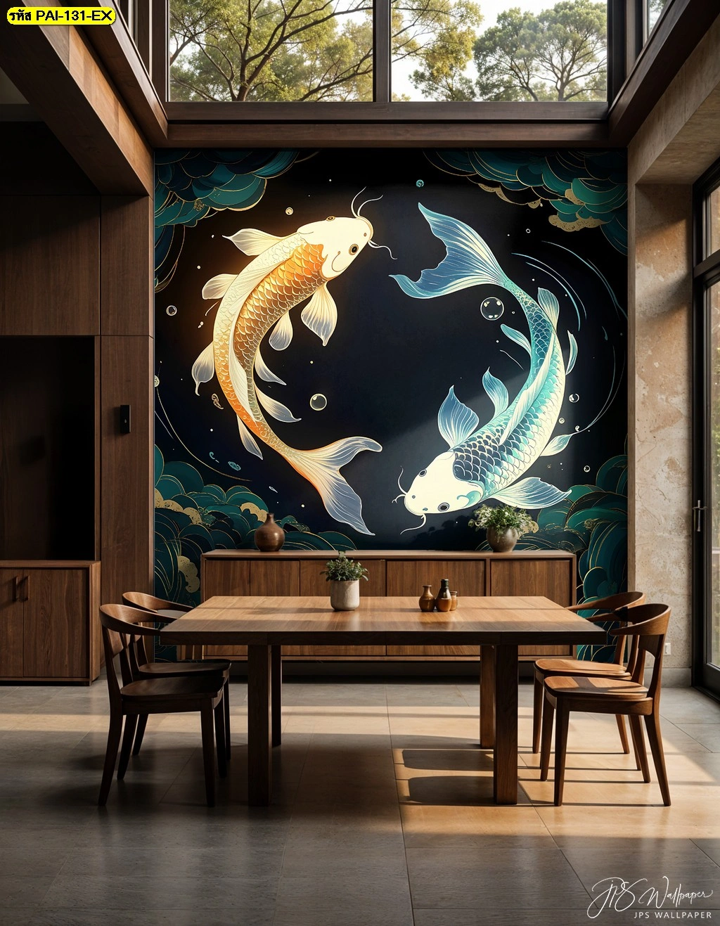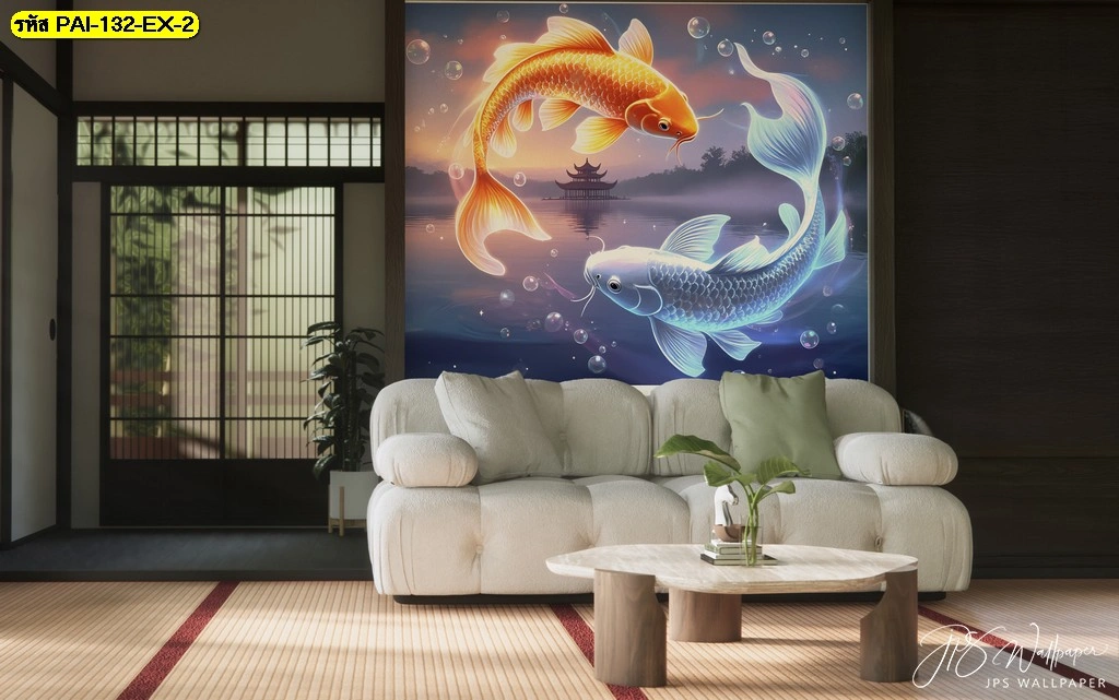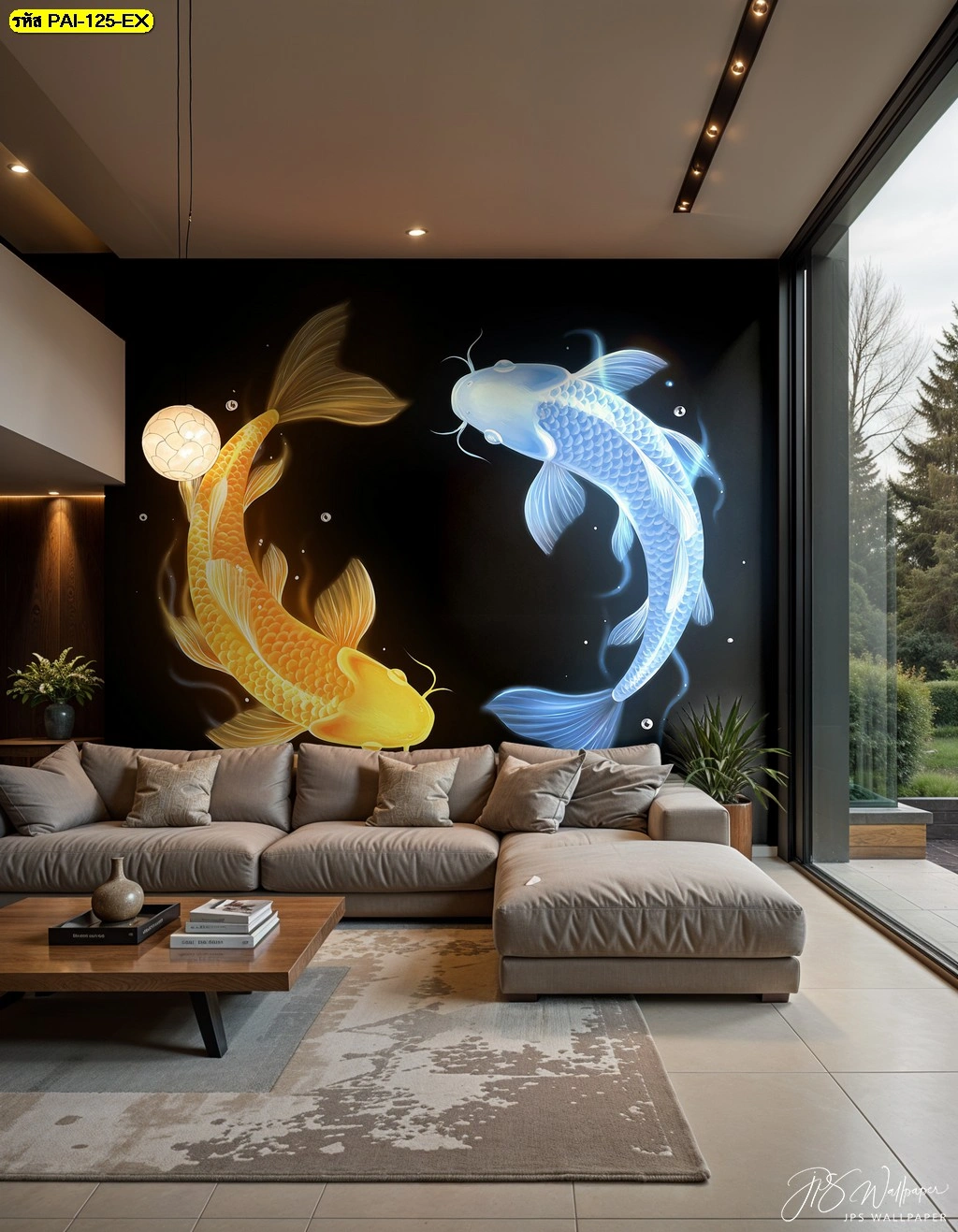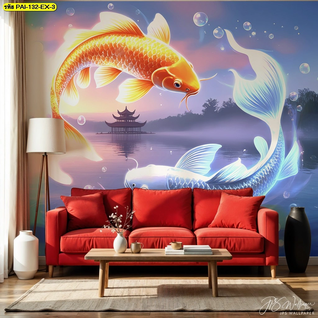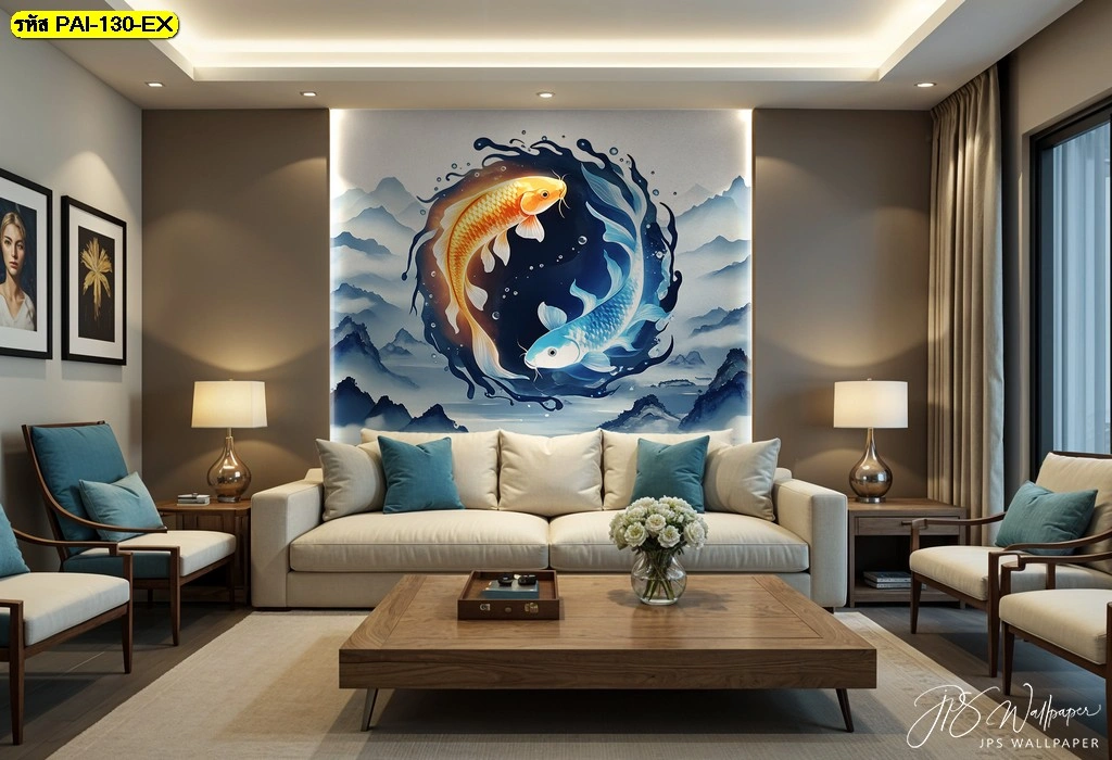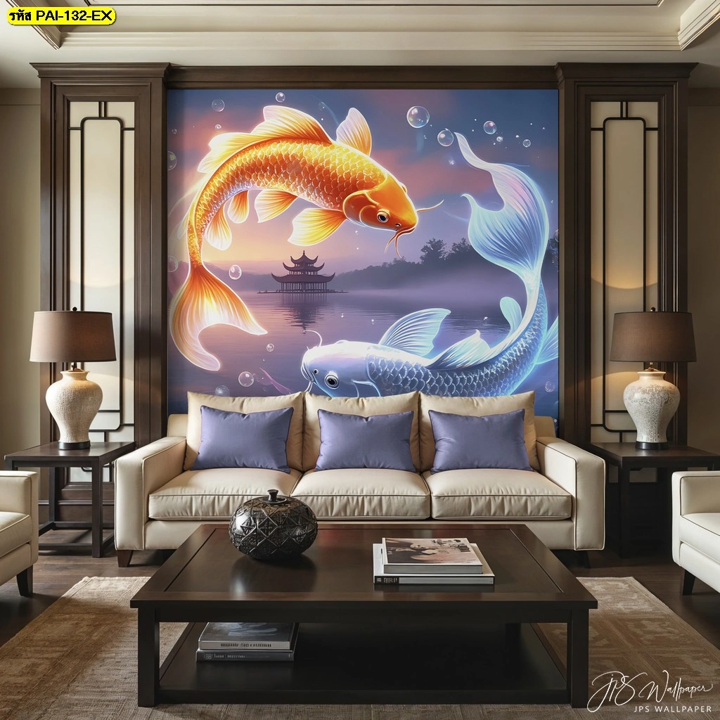 วอลเปเปอร์ปลาคาร์ฟแต่งห้องรับแขก เติมพลังมงคลให้ทุกมุมบ้าน