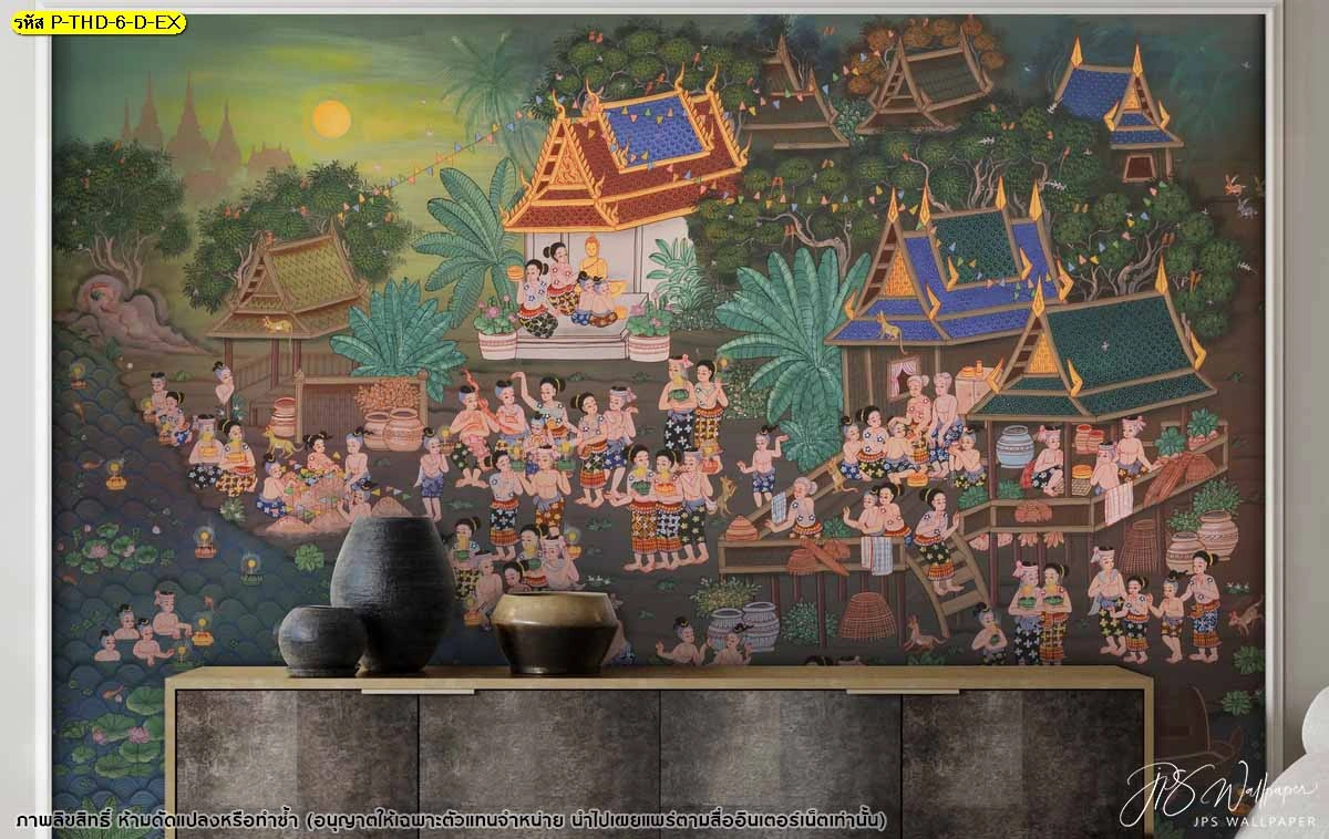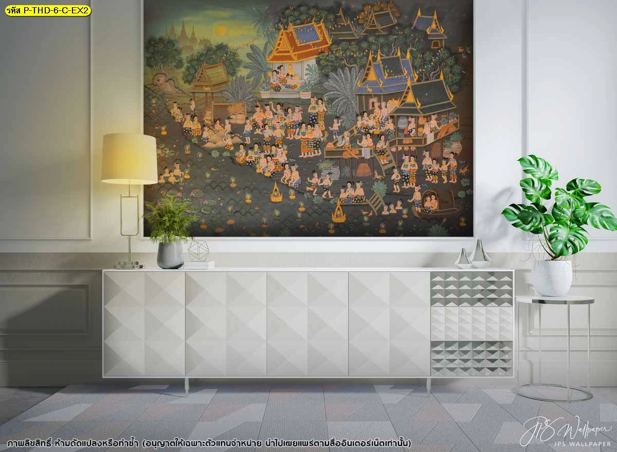 ภาพจิตรกรรมฝาผนังประเพณีไทยประดับห้อง ถ่ายทอดเรื่องราวล้ำค่าเหนือกาลเวลา