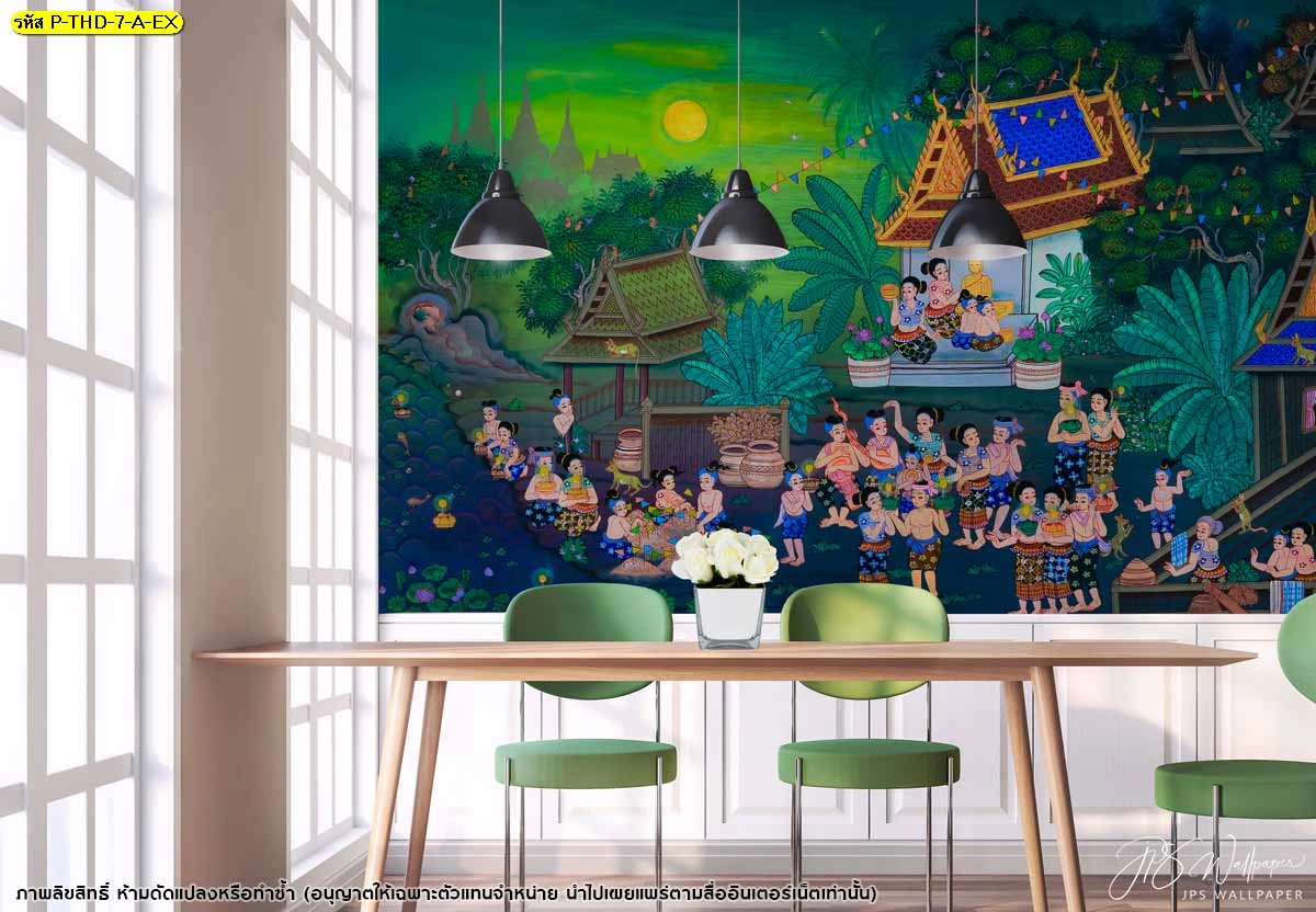 เนรมิตห้องรับประทานอาหารด้วยภาพจิตรกรรมฝาผนังประเพณีไทย เสริมสร้างบรรยากาศอบอุ่นและหรูหราสำหรับมื้ออาหารสุดพิเศษ