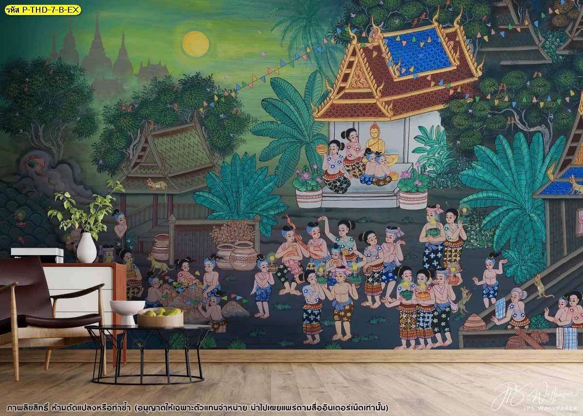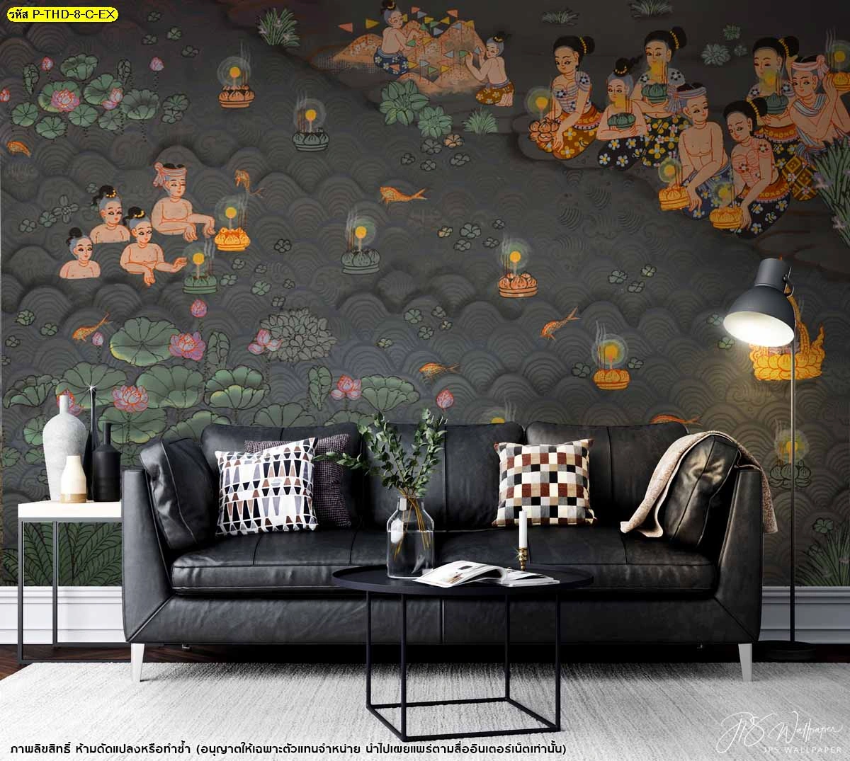 วอลเปเปอร์สั่งพิมพ์ลายประเพณีลอยกระทง เนรมิตผนังให้เป็นผลงานชิ้นเอก
