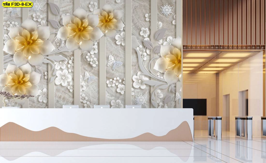 วอลเปเปอร์ดอกไม้หรูสามมิติ เพิ่มจุดเด่นให้ล็อบบี้โรงแรม ร้านอาหาร คลินิก