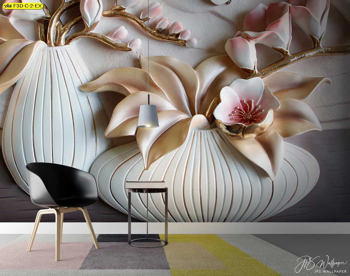 สั่งพิมพ์และติดตั้ง วอลเปเปอร์ดอกไม้หรูสามมิติ คุณภาพสูง บริการครบจบในที่เดียว
