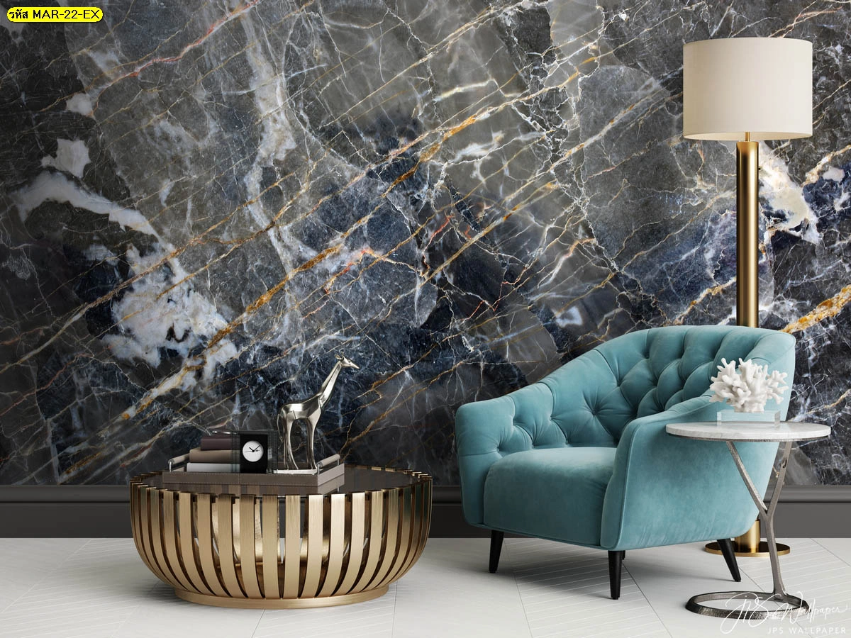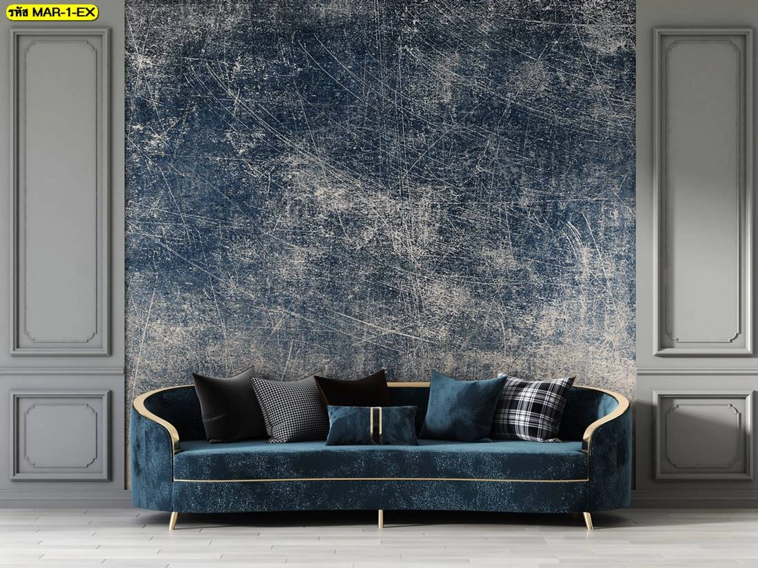 วอลเปเปอร์ลายหินอ่อน สีน้ำเงินเทา เหมาะกับตกแต่งผนังห้องรับแขกหรือมุมพักผ่อน ดูทันสมัยและเสริมบรรยากาศหรูหราให้กับงานตกแต่งภายในนักออกแบบและอสังหาริมทรัพย์โดยเฉพาะ