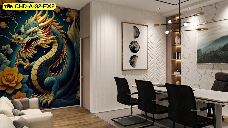 ภาพมังกรตกแต่งห้องทำงาน เสริมบารมี และ วอลเปเปอร์ฮวงจุ้ยมังกร ที่สุดของงานดีไซน์เพื่อผู้บริหาร