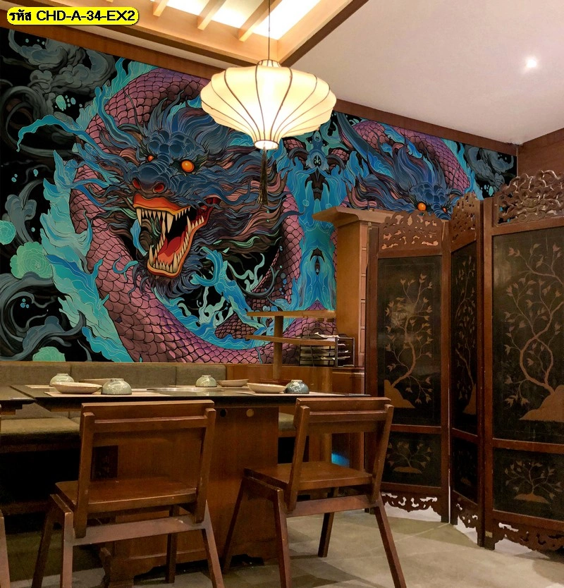ภาพมังกรตกแต่งผนังในห้องอาหารสไตล์จีนโมเดิร์นช่วยดึงดูดโชคลาภและสร้างความประทับใจให้ลูกค้าด้วยงานศิลปะระดับพรีเมียม
