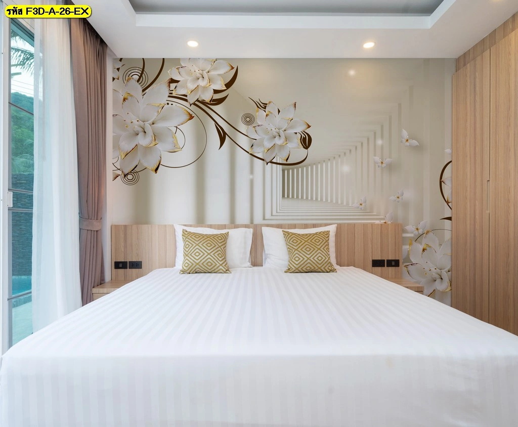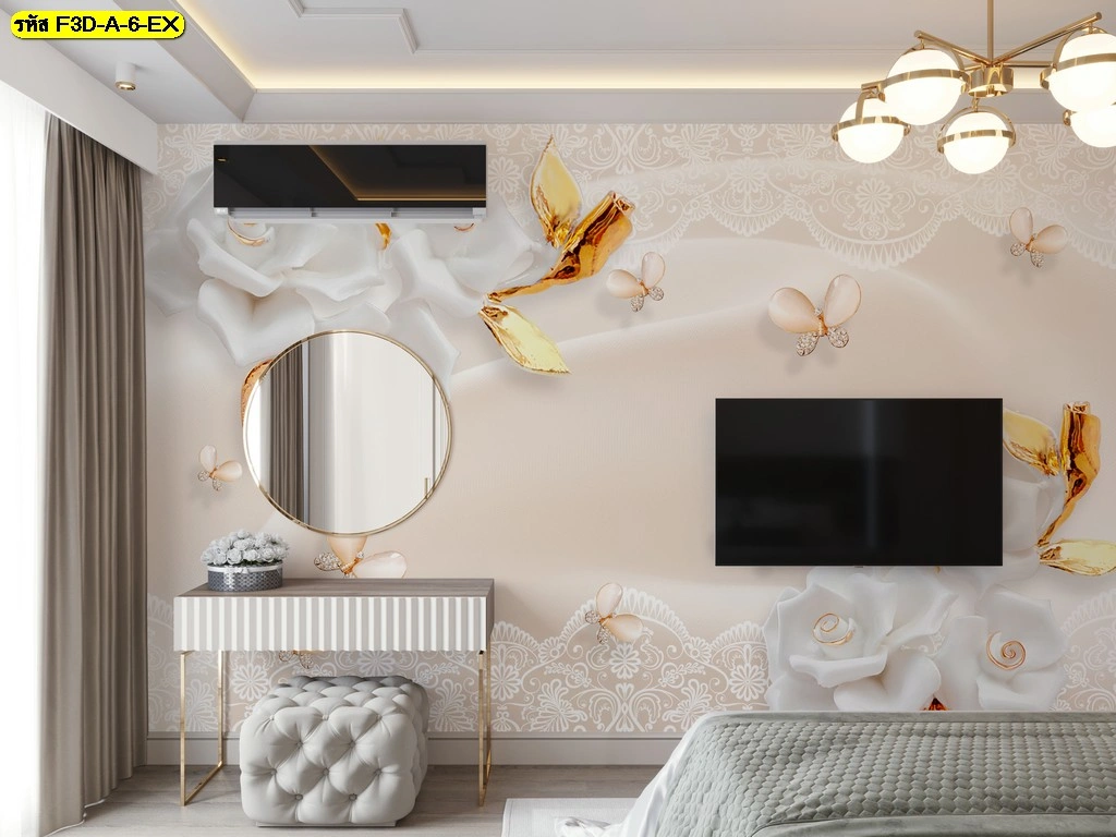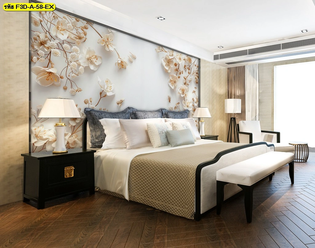 วอลเปเปอร์ภาพดอกไม้ 3 มิติ  สร้างความแตกต่างให้ห้องนอนด้วยลวดลายดอกไม้เฉดขาวทอง หรูหรา สบายตา เหมาะกับบ้านหรือคอนโดสไตล์โมเดิร์น ตอบโจทย์ลูกค้าที่ต้องการความพิเศษและมีเอกลักษณ์เฉพาะตัว​