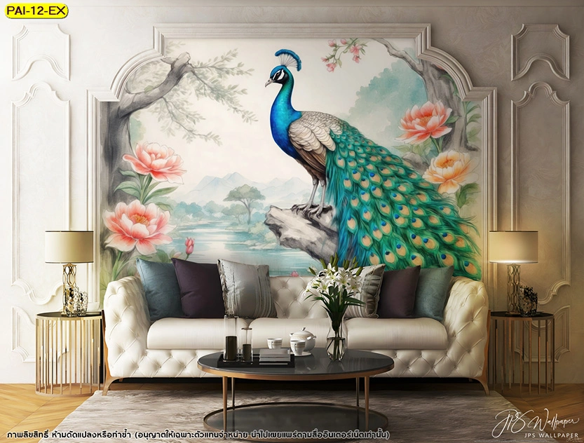 ความโดดเด่นของลวดลายที่เราคัดสรรมา คือความละเอียดของเส้นสายฝีแปรงที่ดูพริ้วไหวเสมือนภาพวาดจริง ทำให้ห้องรับแขกของคุณดูมีมิติ ไม่แข็งกระด้าง ช่วยสะท้อนรสนิยมที่เหนือระดับของเจ้าของบ้านได้อย่างชัดเจน ไม่ว่าจะเป็นบ้านสไตล์โมเดิร์นคลาสสิก หรือสไตล์ร่วมสมัย การมีภาพนกยูงประดับอยู่จะช่วยเติมเต็มความสมบูรณ์แบบให้กับพื้นที่นั้นๆ