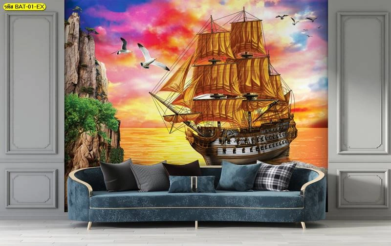 นอกจากนี้ ยังมีเทคนิคการพิมพ์ที่หลากหลาย เช่น วอลเปเปอร์เรือสำเภาสีทองสามมิติ ที่ให้มิติความลึกสมจริง หรือหากท่านต้องการตกแต่งกระจกหน้าออฟฟิศ เรายังมีบริการพิมพ์สติ๊กเกอร์ 3M ลายเรือมงคลติดกระจก ที่ทนทานต่อแสงแดดและเช็ดทำความสะอาดง่าย