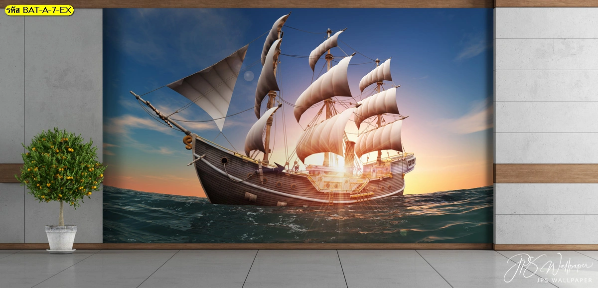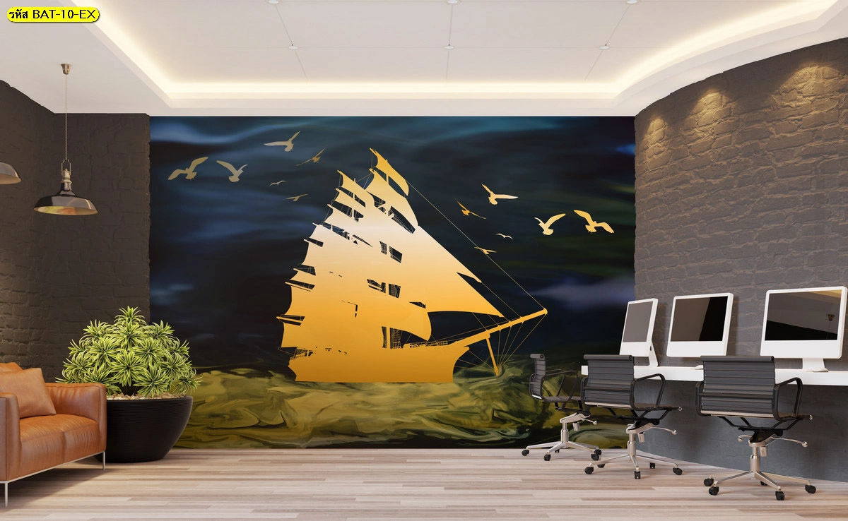 วอลเปเปอร์เรือสำเภาเสริมฮวงจุ้ยเรียกทรัพย์ สำหรับห้องผู้บริหาร