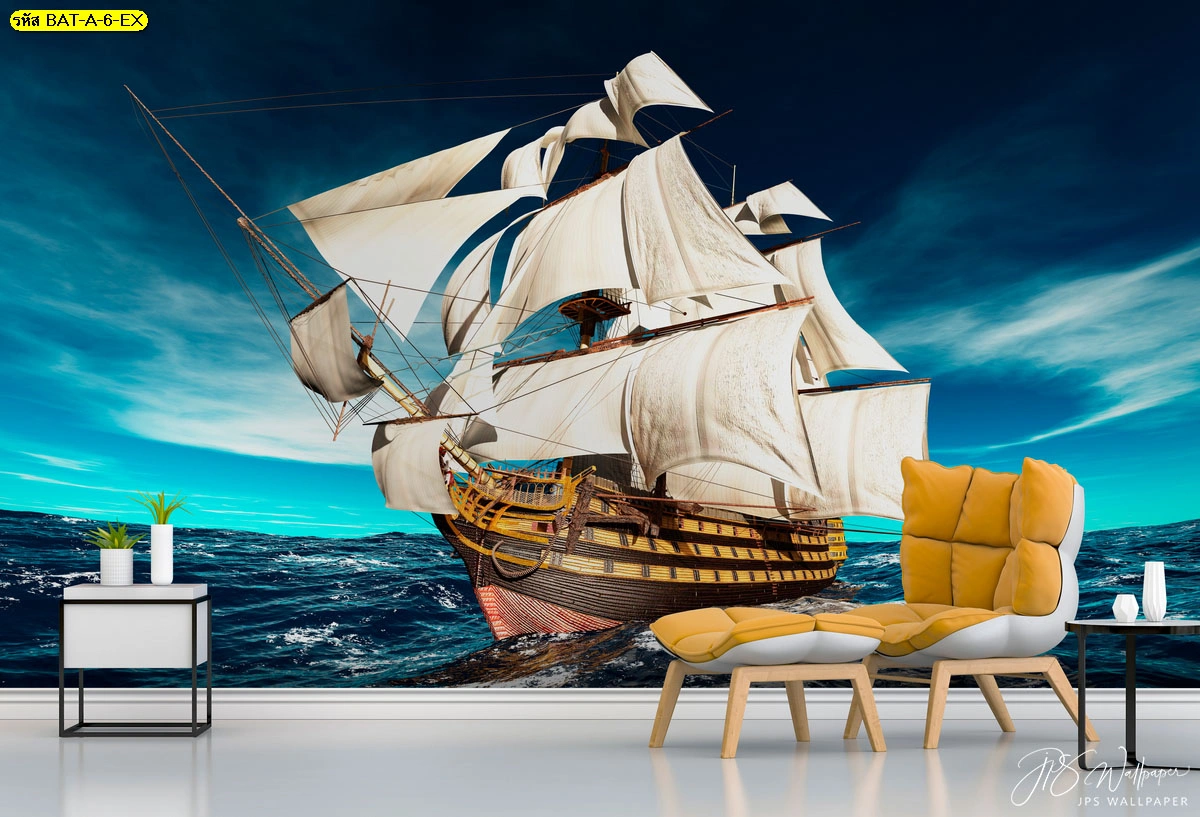 วอลเปเปอร์ลายเรือสำเภาโบราณกางใบเต็มที่แล่นฝ่าคลื่นลม สื่อถึงการไม่ย่อท้อต่ออุปสรรค ช่วยเสริมกำลังใจในการดำเนินธุรกิจ