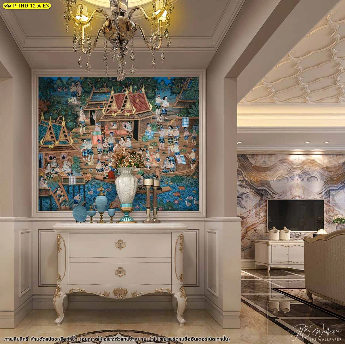 วอลเปเปอร์ภาพวาดวิถีชีวิตไทย เปลี่ยนผนังห้องคอนโดให้ดูหรูหราด้วยกลิ่นอายอาร์ตแกลเลอรี