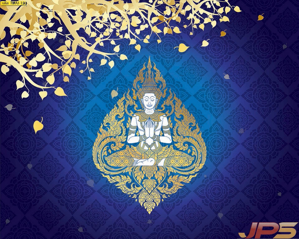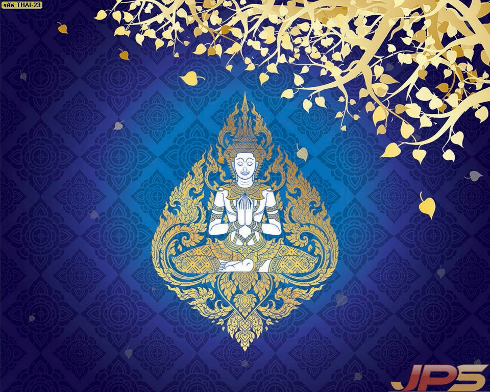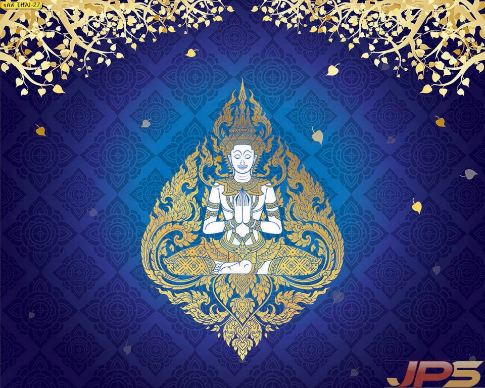ภาพศิลปะไทยตกแต่งห้องพระพื้นสีน้ำเงินใบโพธิ์คู่ นำเสนอความงามผ่านวอลเปเปอร์คุณภาพสูง