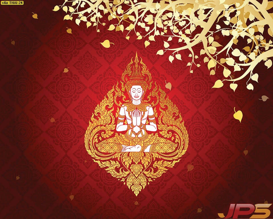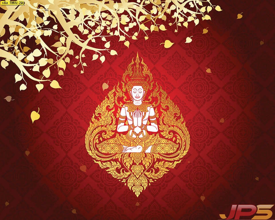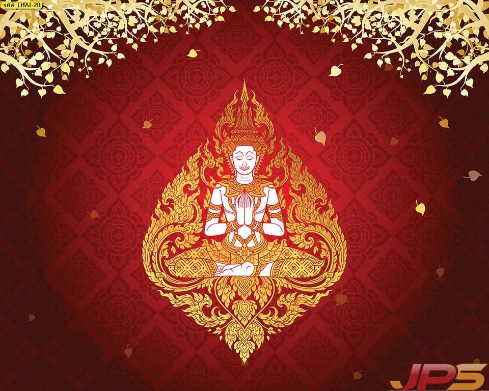 วอลเปเปอร์เทพพนมโทนสีแดงมงคลคู่ใบโพธิ์ทอง สั่งทำขนาดได้ตามต้องการเพื่อความโดดเด่น