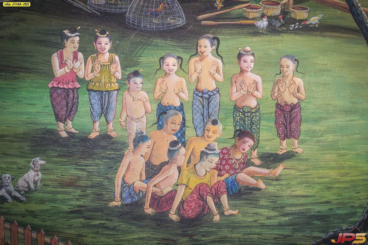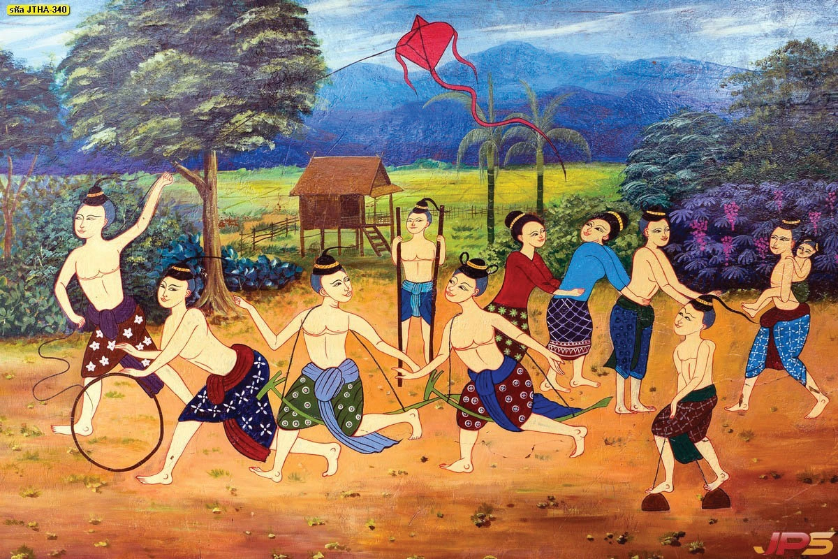 ภาพติดผนังมงคลชุดวิถีชีวิตไทยชนบท จำลองการรวมกลุ่มเล่นของเด็กไทยในสมัยก่อนที่ให้ความรู้สึกอบอุ่นจริงใจ