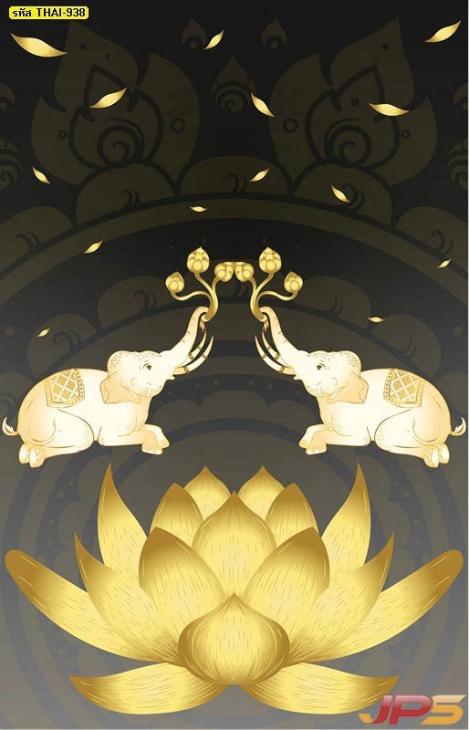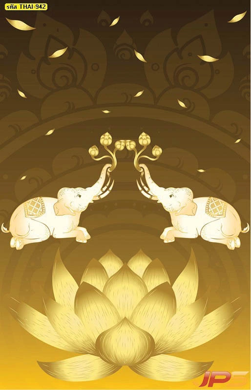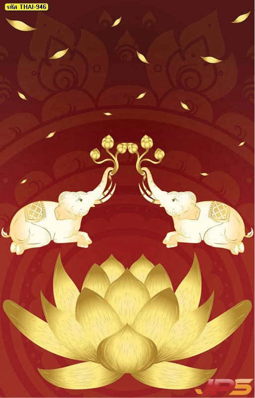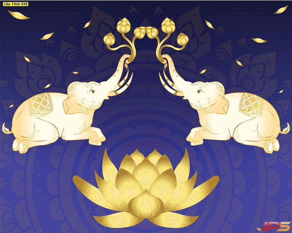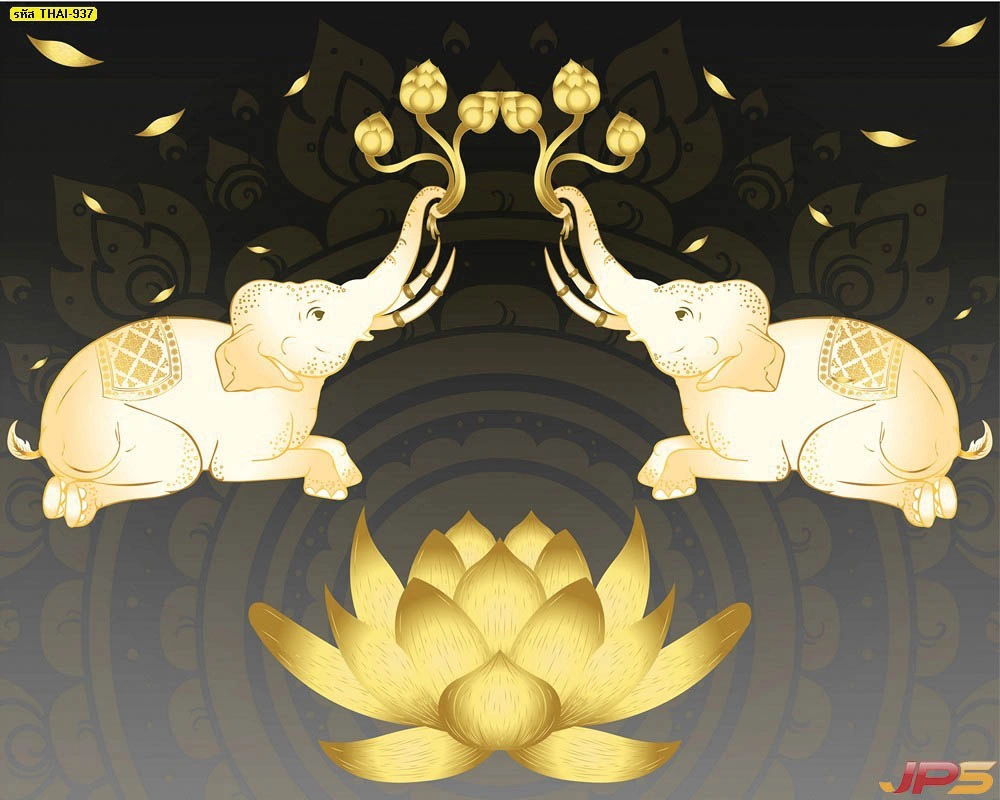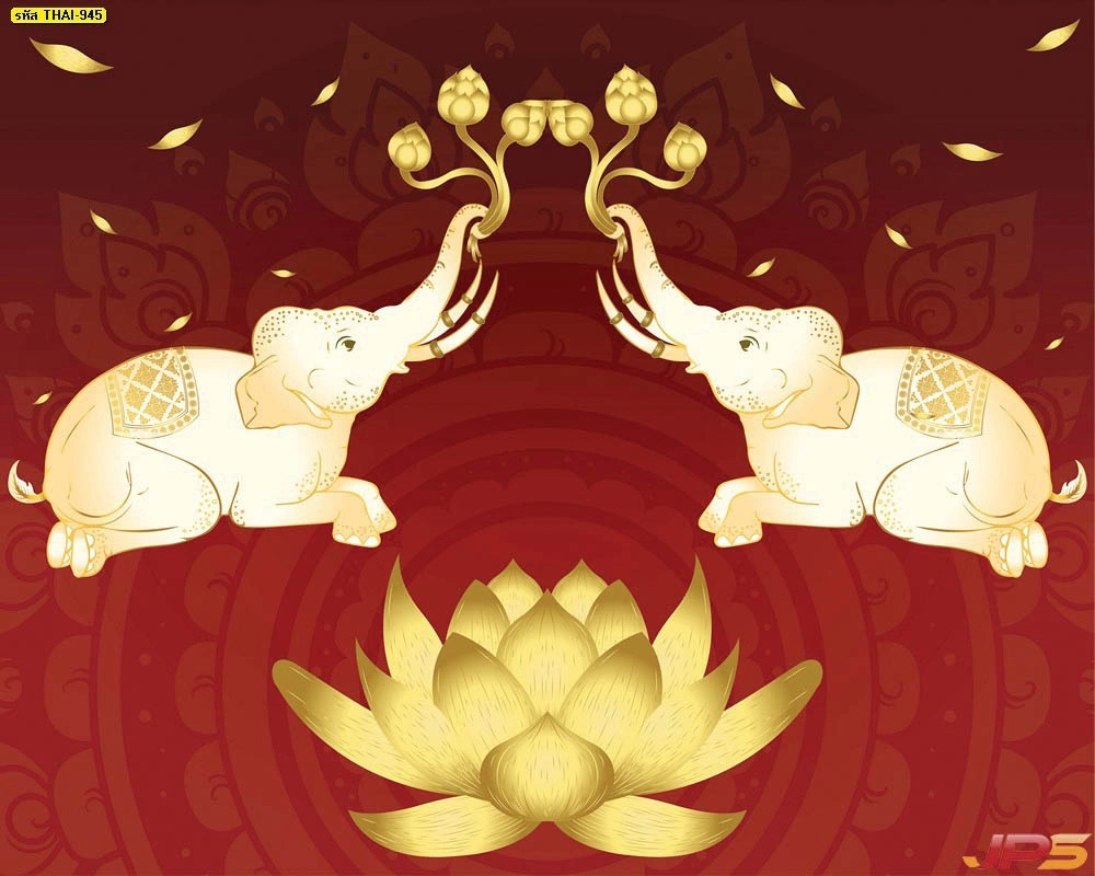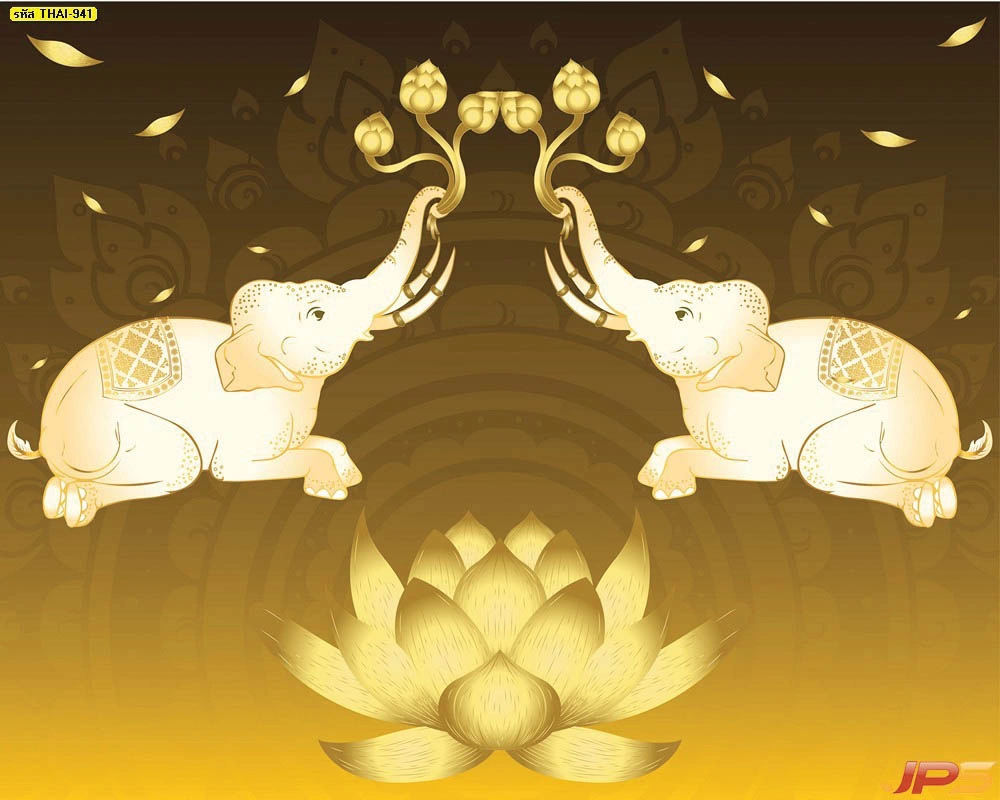 วอลเปเปอร์สั่งพิมพ์ลายช้างคู่ชูดอกบัวตามขนาดผนัง ออกแบบได้ตรงพื้นที่จริง