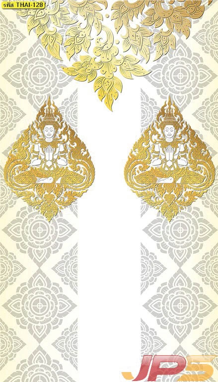 งานพิมพ์แคนวาสลายไทยตกแต่งผนังวัดและมุมสำหรับประดิษฐานองค์พระพุทธรูปที่เน้นความสะอาดตาและความสง่างามของลวดลายไทย