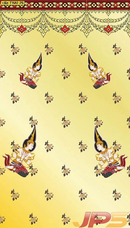 วอลเปเปอร์ลายเทพพนมพื้นสีทองแบบกราฟิกไทยโบราณที่นำมาพิมพ์ลงบนวัสดุเกรดพรีเมียมเพื่อความสวยงามในงานสถาปัตยกรรม