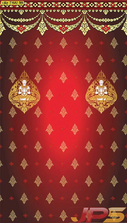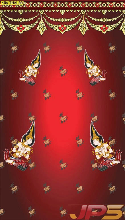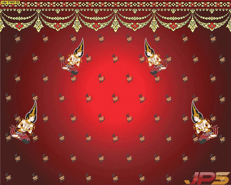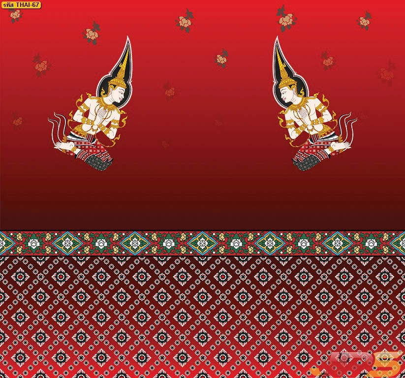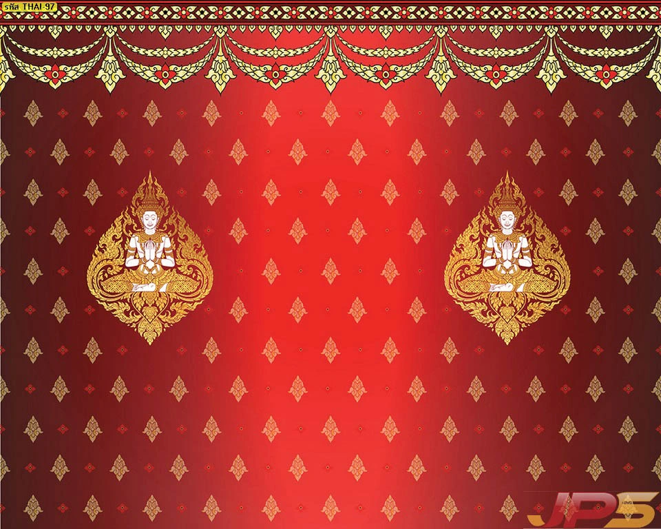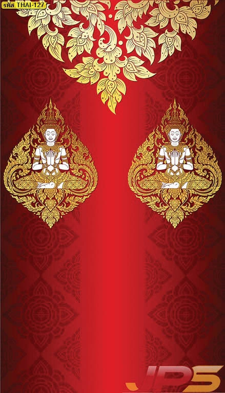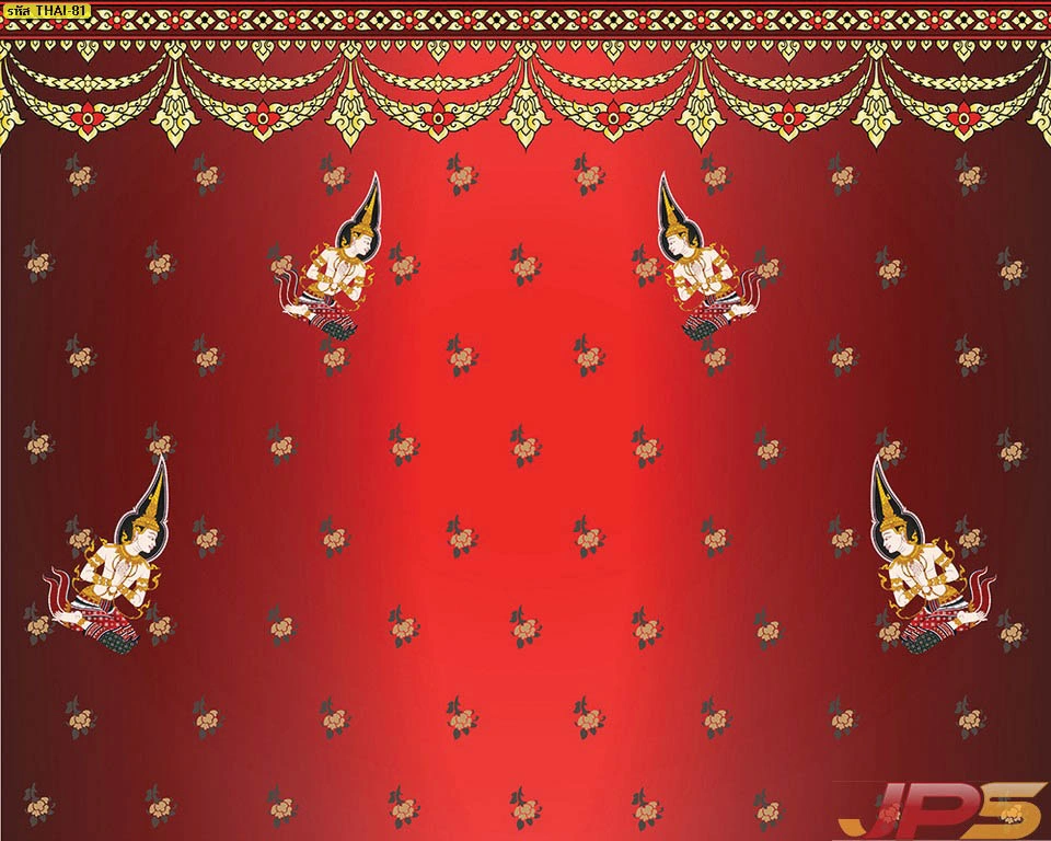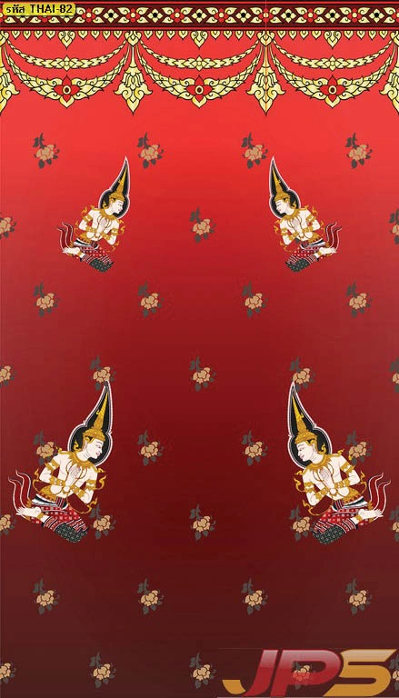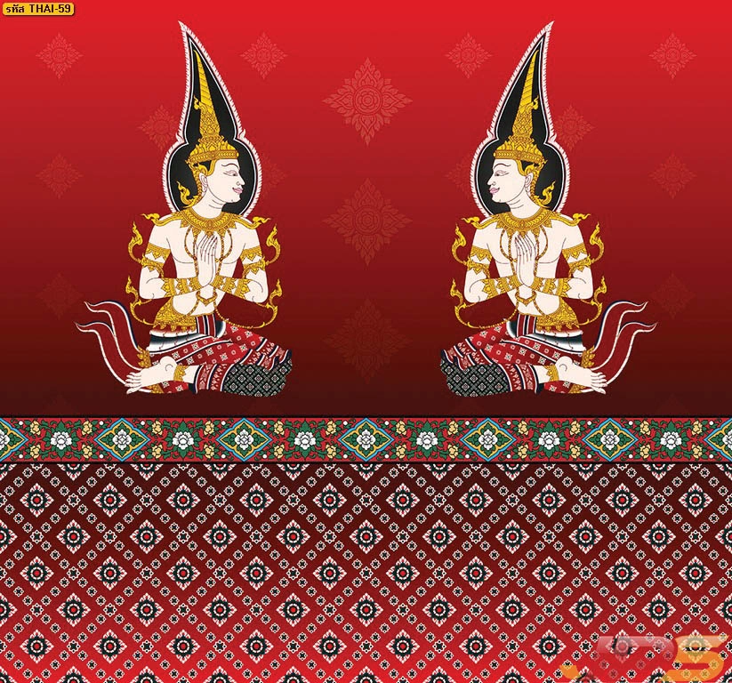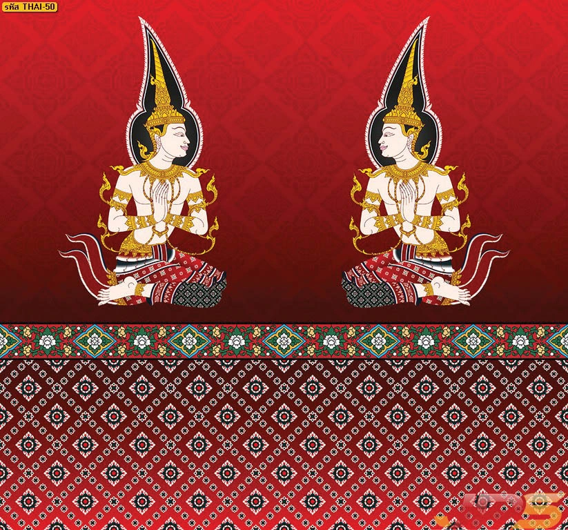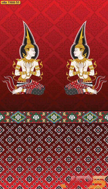 วอลเปเปอร์ลายเทพพนมพื้นแดงลายทอง และบริการ รับพิมพ์สติ๊กเกอร์ 3M ลายไทยติดกระจกห้องพระ