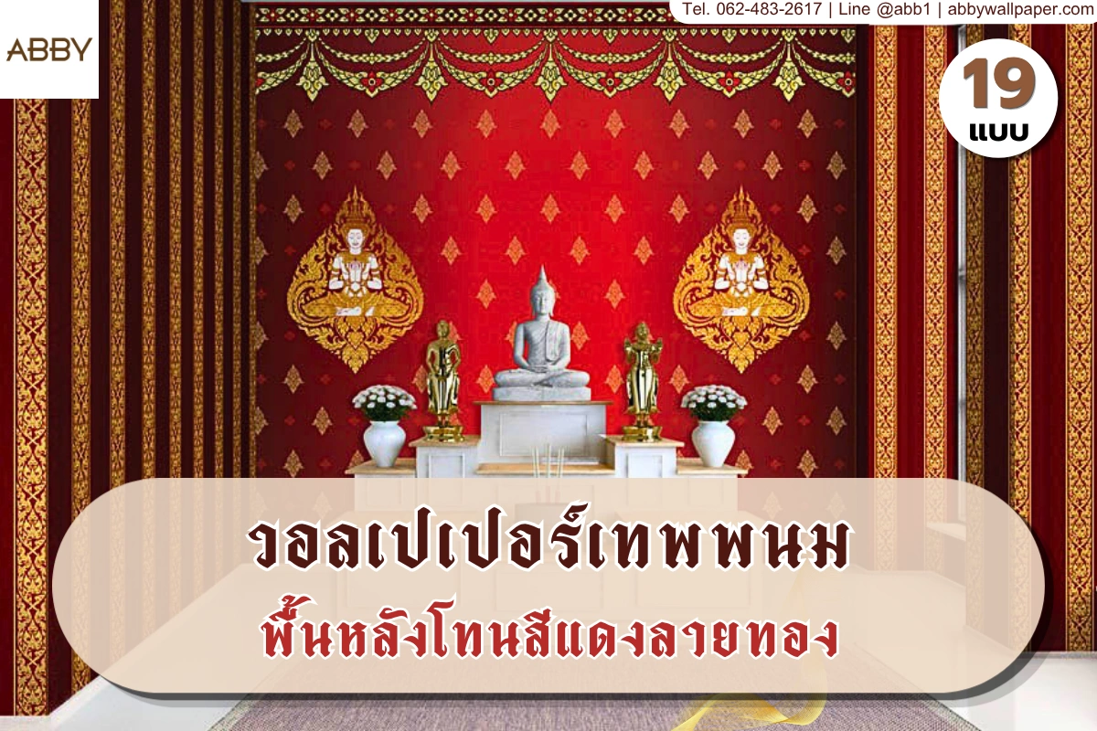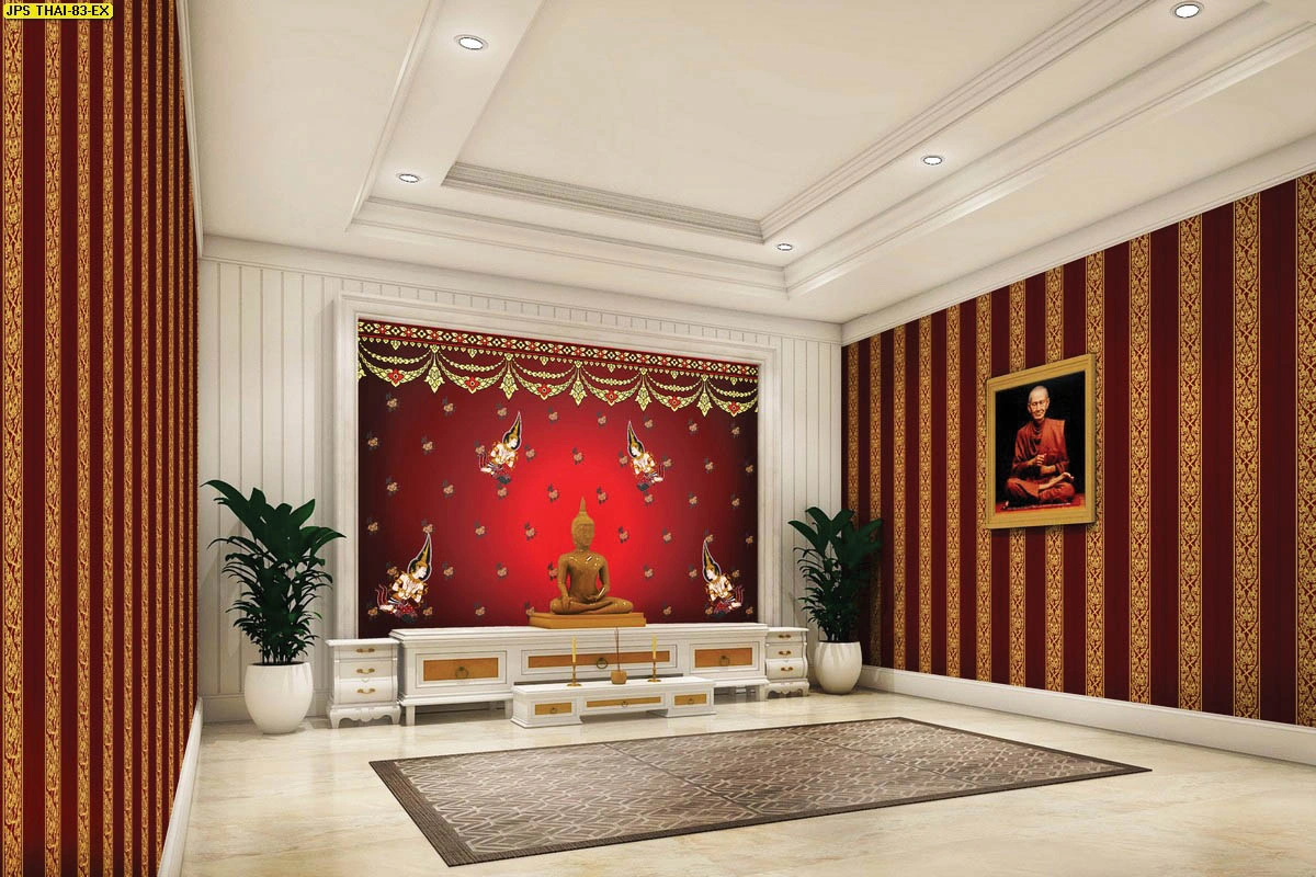 วอลเปเปอร์ตกแต่งห้องพระลายไทยพื้นแดง พลิกโฉมห้องพระให้ดูสง่าด้วยงบประมาณที่คุ้มค่า