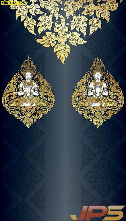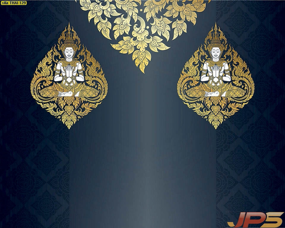 วอลเปเปอร์ลายไทยพื้นน้ำเงินทอง ลายเทพพนม เหมาะสำหรับตกแต่งห้องพระที่ต้องการโทนสีแตกต่าง