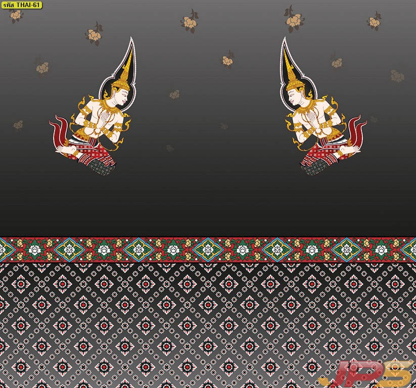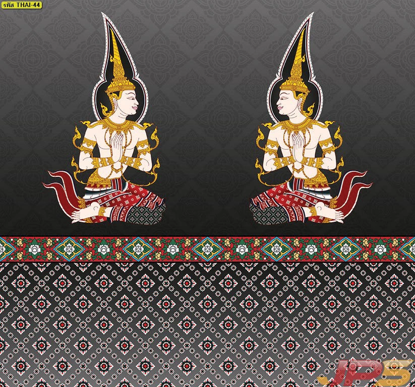 วอลเปเปอร์ลายเทพพนมแบบกระจายตัวบนพื้นดำทอง เหมาะกับผนังด้านข้างหรือพื้นที่เสริมในห้องพระ
