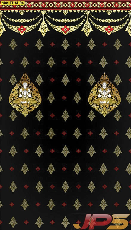 วอลเปเปอร์ลายไทยตกแต่งห้องพระ สามารถเลือกใช้ลายใหญ่เป็นผนังหลัก และใช้ลายแพทเทิร์นซ้ำในผนังด้านข้าง เพื่อสร้างความต่อเนื่องของพื้นที่ การเลือกโทนสีเข้มอย่างดำทองช่วยให้พระประธานโดดเด่นมากขึ้น และยังเข้ากับงานไม้หรือแท่นบูชาได้ง่าย หรืออาจเพิ่มความโดดเด่นให้มากยิ่งขึ้นด้วยลวดลายวอลเปเปอร์เทพพนมลายบัว