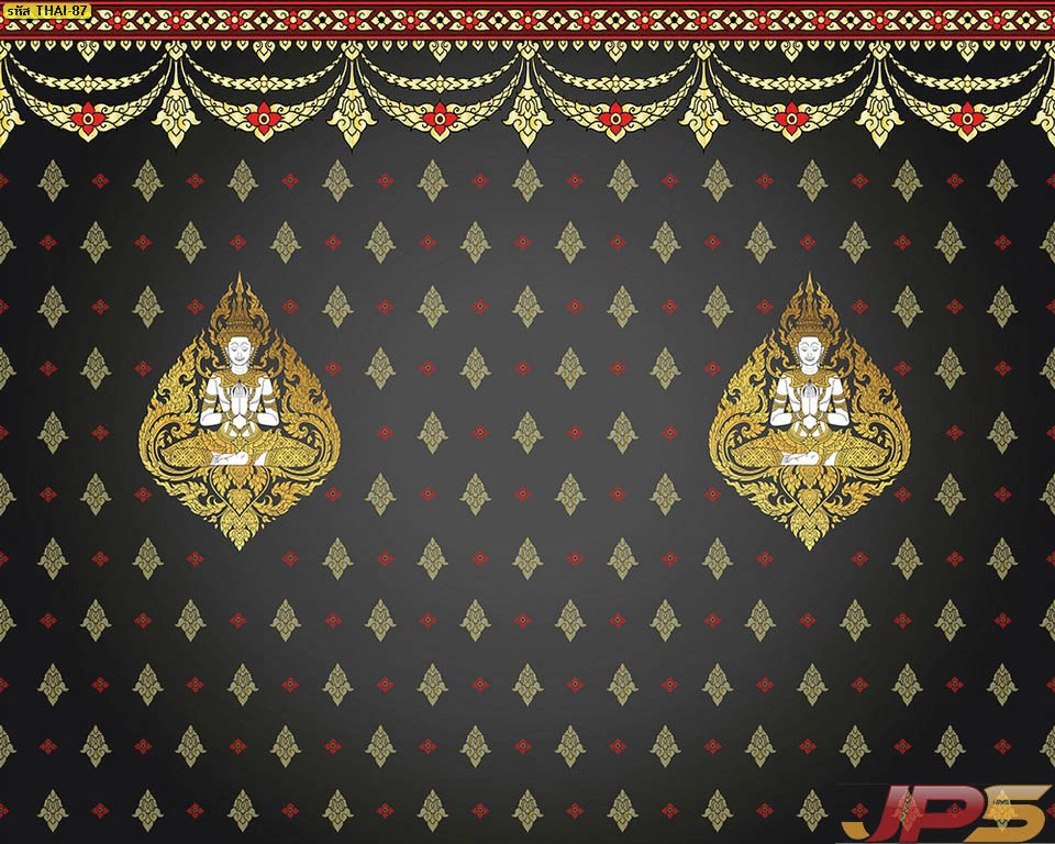 วอลเปเปอร์ลายไทยกรอบประดับด้านบน โทนดำทอง เหมาะสำหรับผนังห้องพระที่ต้องการความต่อเนื่องของลวดลาย