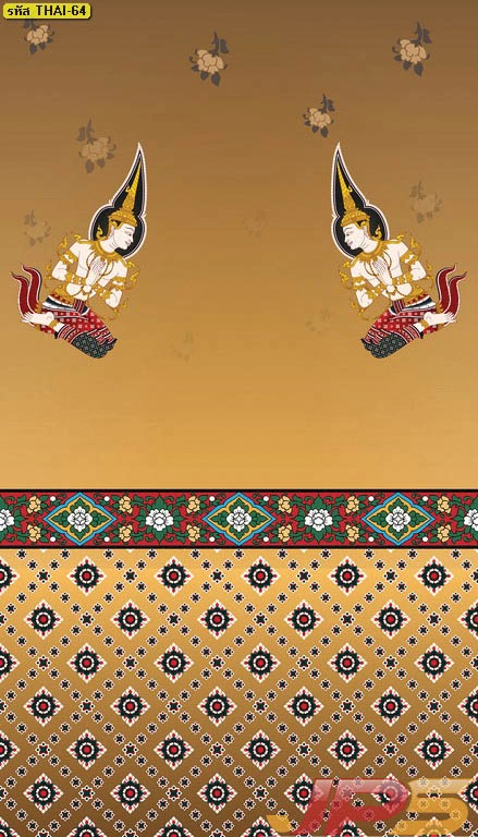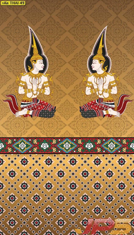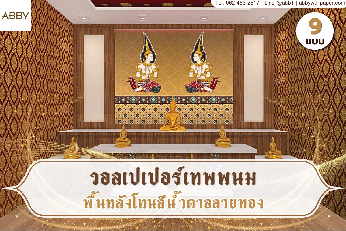 วอลเปเปอร์เทพพนมพื้นน้ำตาลลายทอง และ ตัวอย่างวอลเปเปอร์ลายไทยสำหรับผนังห้องพระ