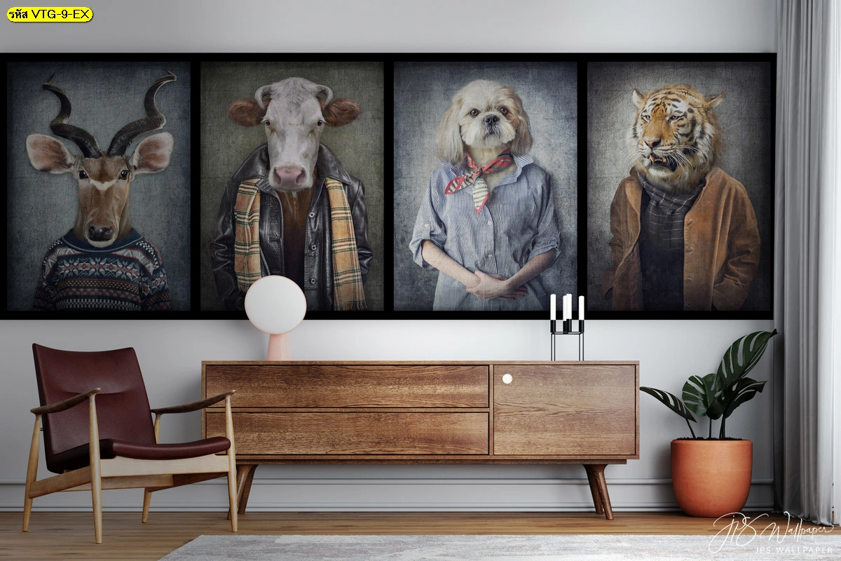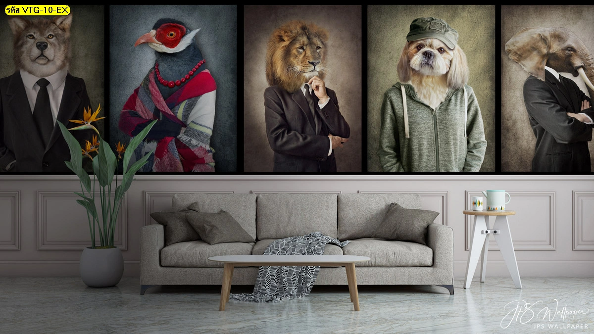 ตกแต่งห้องรับแขกด้วยศิลปะสัตว์ในชุดสูท