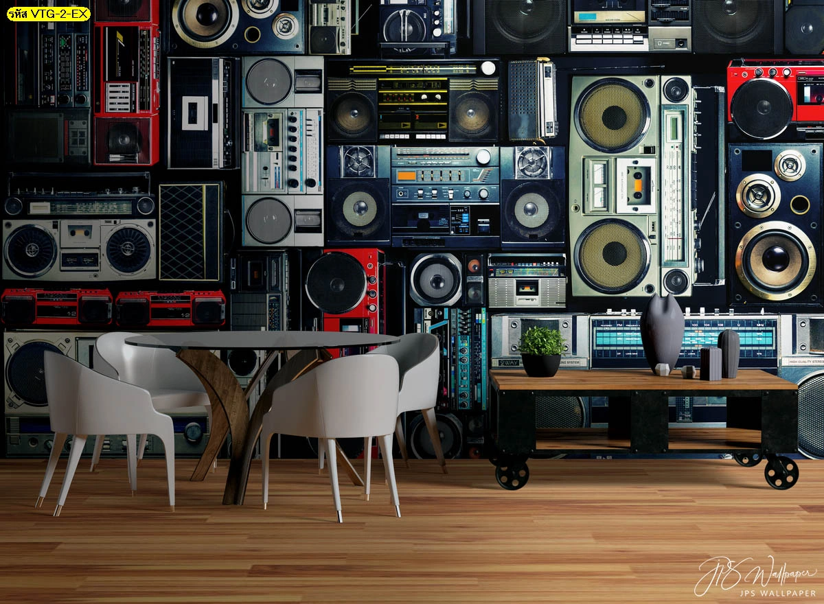 วอลเปเปอร์สั่งพิมพ์ศิลปะเรโทรวินเทจลวดลายเครื่องเสียงและวิทยุโบราณจากยุค 1970-1980 เป็นสัญลักษณ์ของการปฏิวัติเทคโนโลยีดนตรีและการสื่อสาร ภาพงานศิลปะติดผนังสไตล์วินเทจนี้รวบรวมเครื่องเสียงหลากหลายรุ่นและยี่ห้อ ตั้งแต่วิทยุขนาดเล็กไปจนถึงระบบเสียงขนาดใหญ่ ซึ่งแต่ละชิ้นมีการออกแบบและเทคโนโลยีที่สะท้อนนวัตกรรมของยุคนั้น นักสะสมที่หลงใหลในประวัติศาสตร์เทคโนโลยีจะชื่นชอบรายละเอียดของปุ่มควบคุม หน้าจอแสดงผล และตัวเครื่องที่มีลักษณะเฉพาะของแต่ละยุค การใช้วอลเปเปอร์ลวดลายศิลปะยุโรปโบราณแบบนี้ในห้องทำงานจึงเป็นการสร้างสภาพแวดล้อมที่กระตุ้นความคิดสร้างสรรคและแสดงถึงความซาบซึ้งในงานศิลปกรรม