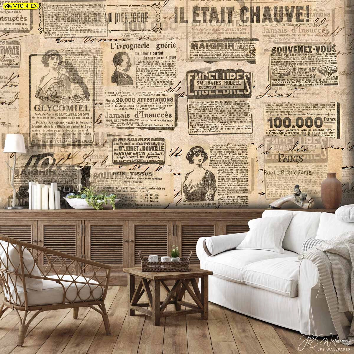 วอลเปเปอร์ศิลปะเรโทร ตกแต่งห้องรับแขกแนวยุโรปคลาสสิก สะท้อนวัฒนธรรมการอ่านและสื่อสารมวลชนยุคต้น สำหรับนักสะสมสิ่งพิมพ์โบราณ