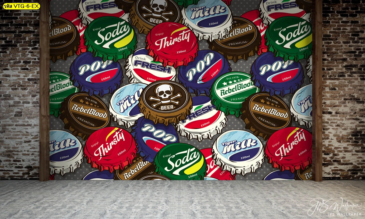 วอลเปเปอร์ศิลปะเรโทร วินเทจลวดลายฝาขวดเบียร์โบราณ ตกแต่งห้องนั่งเล่นสไตล์อุตสาหกรรม สะท้อนวัฒนธรรมการดื่มแบบคลาสสิก