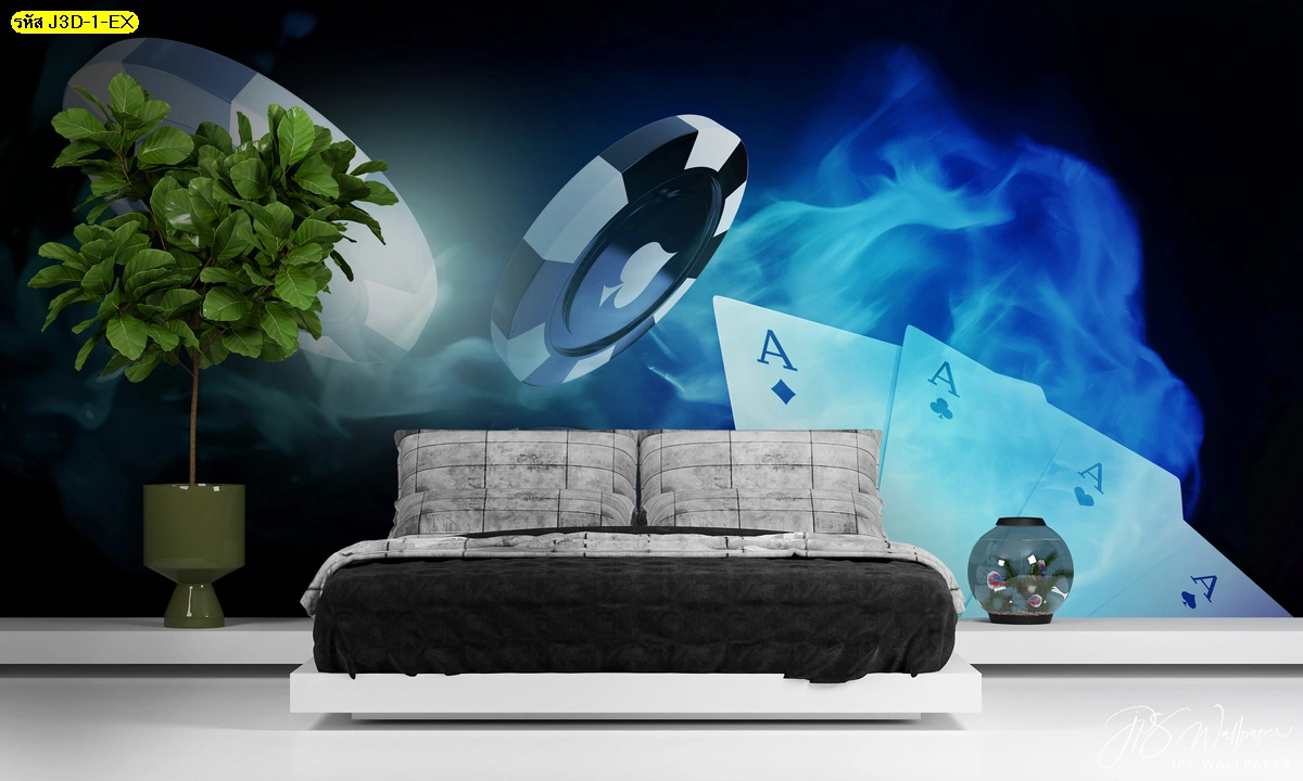 รูปติดผนังชิปโป๊กเกอร์ 3D ไพ่เอซสีน้ำเงินควันลึกลับตกแต่งห้องนอนห้องเกมส์สไตล์คาสิโนโมเดิร์นแฟนตาซี