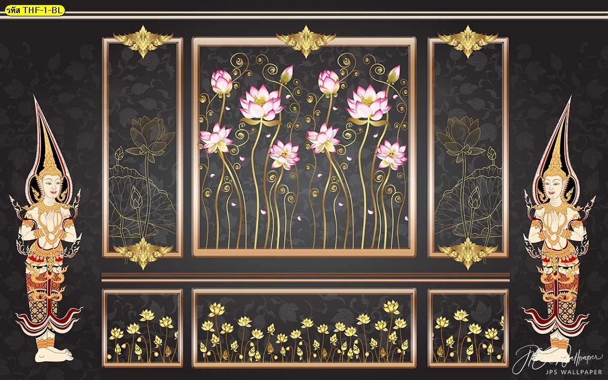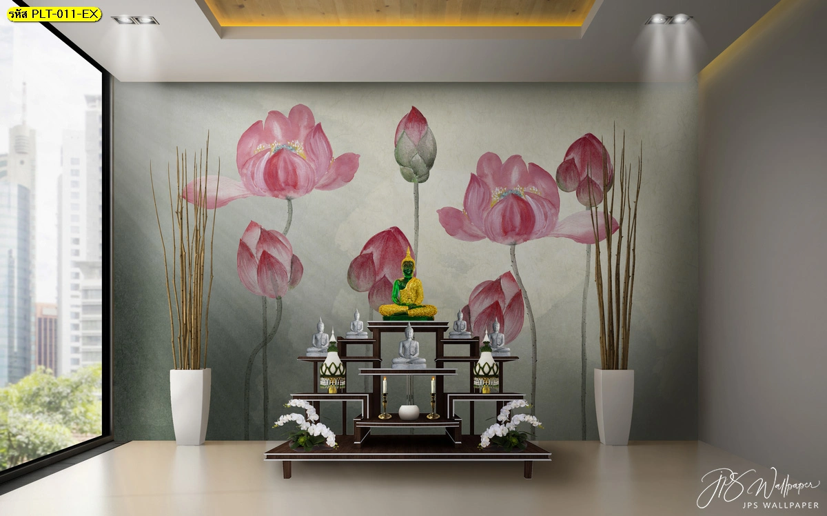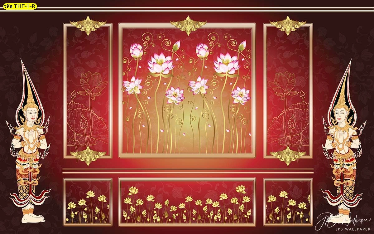 วอลเปเปอร์แต่งห้องพระลายไทย ความงามจาก ภาพวาดลายดอกบัวประดับห้องพระ