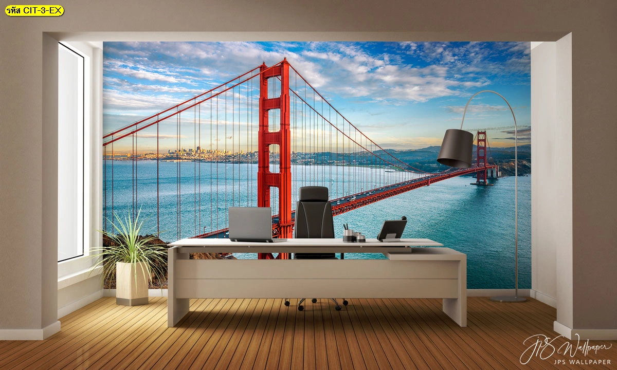 ตกแต่งห้องทำงานผู้บริหารด้วยภาพสะพานสีแดงและทะเลเปิดกว้าง